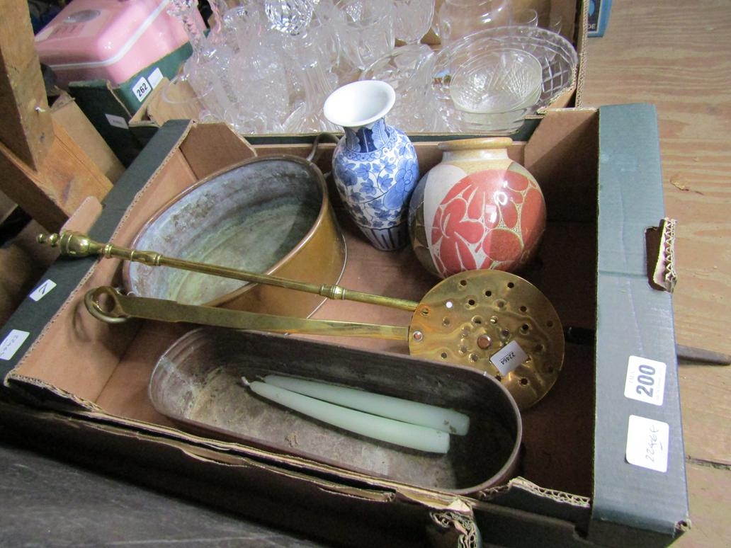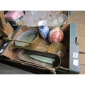 BOX OF MISC TO INCL FISH KETTLE, VASES ETC