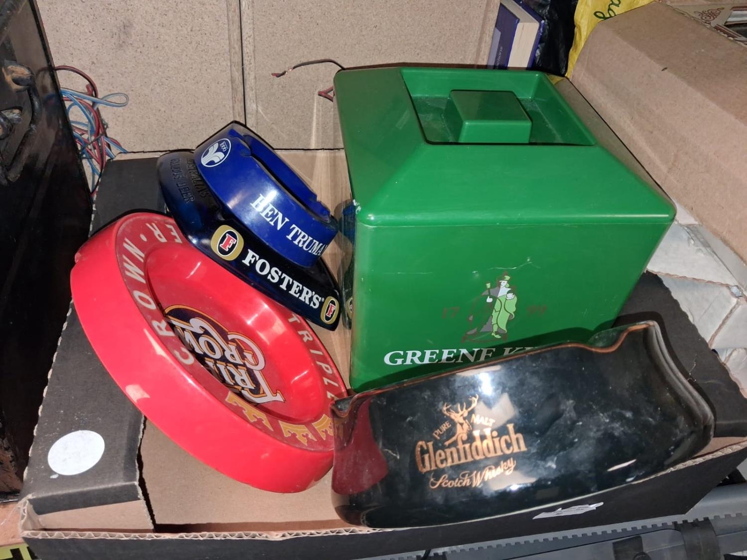 Small Box Of Pub Ashtray'S And Ice Box