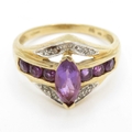9ct Gold Amethyst & Diamond Dress Ring, Hallmarked London (3.1g) Size N
