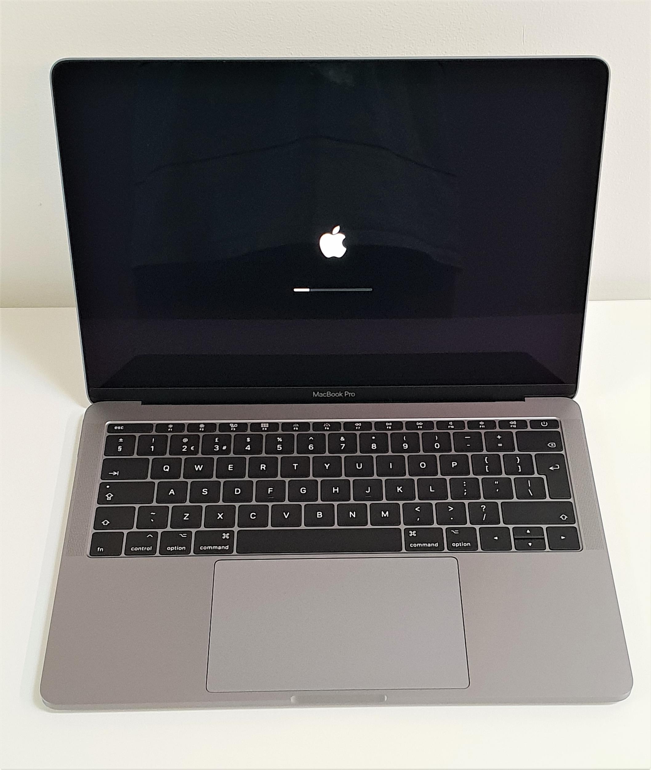 fully refurbished with freshly installed OS, Space Gray, 2.3GHz, 8GB, 128GB SSD, serial number FVFXH7RPHV22, model A1708, with USB-C Power adapter, cable and plug