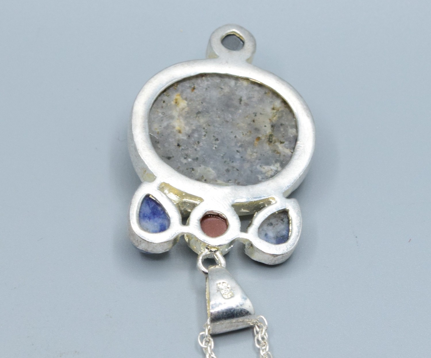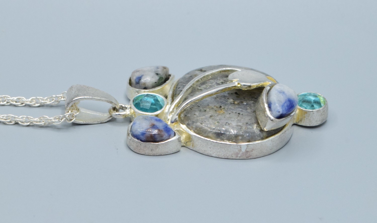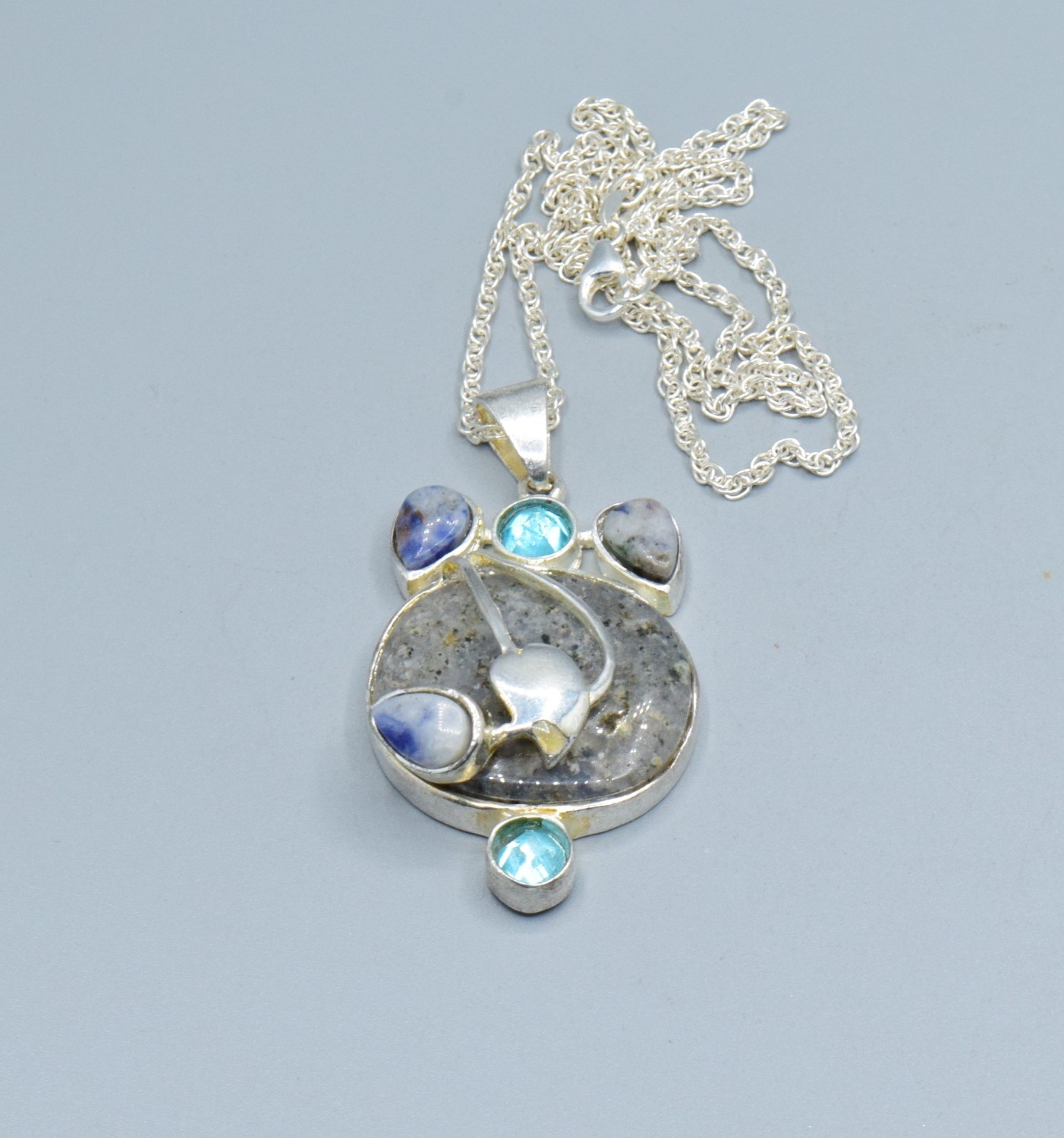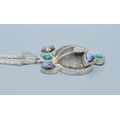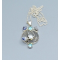 925 silver mixed Agate and gem stone Art Nouveau inspired pendant necklace on a new 925 silver neck chain