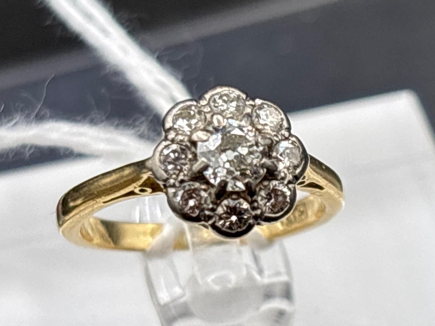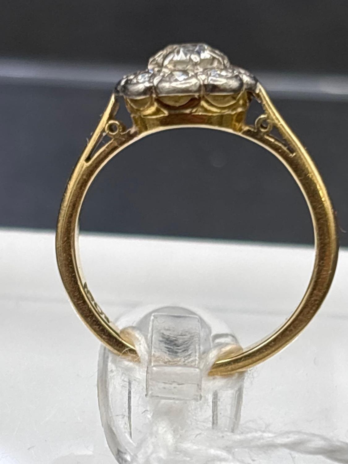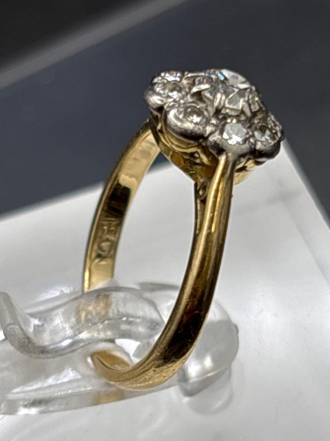 Antique daisy diamond cluster ring in 18ct gold, size I
