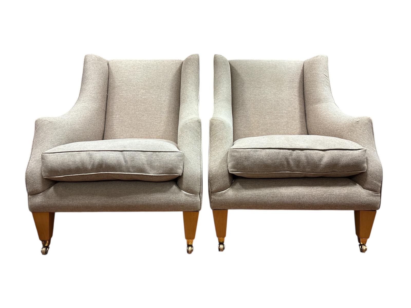 A PAIR OF WING CHAIRS 97cm (h) x 70cm (w) x 83cm (d) (AF)