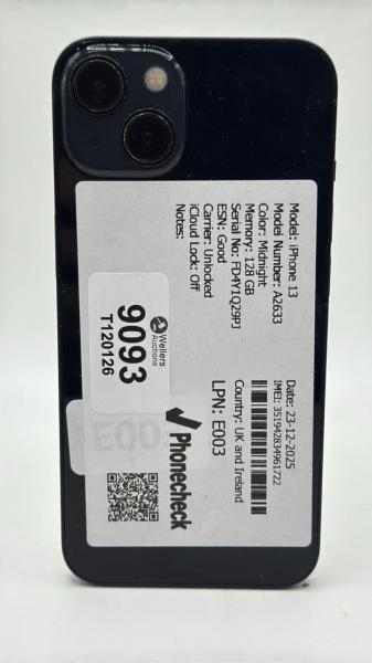 APPLE IPHONE 13 / A2633 / 128GB / IMEI: 351942834961722 / I-CLOUD UNLOCKED