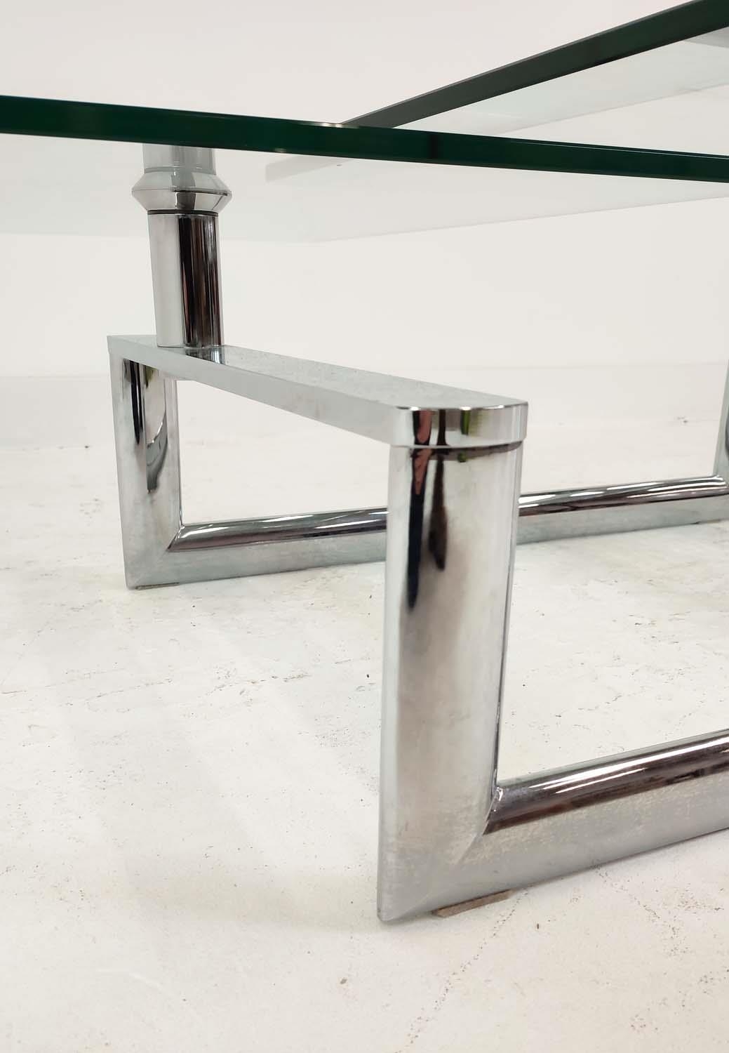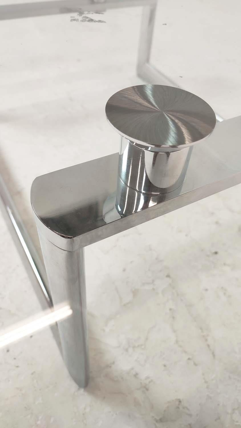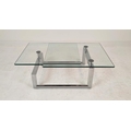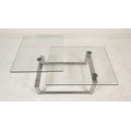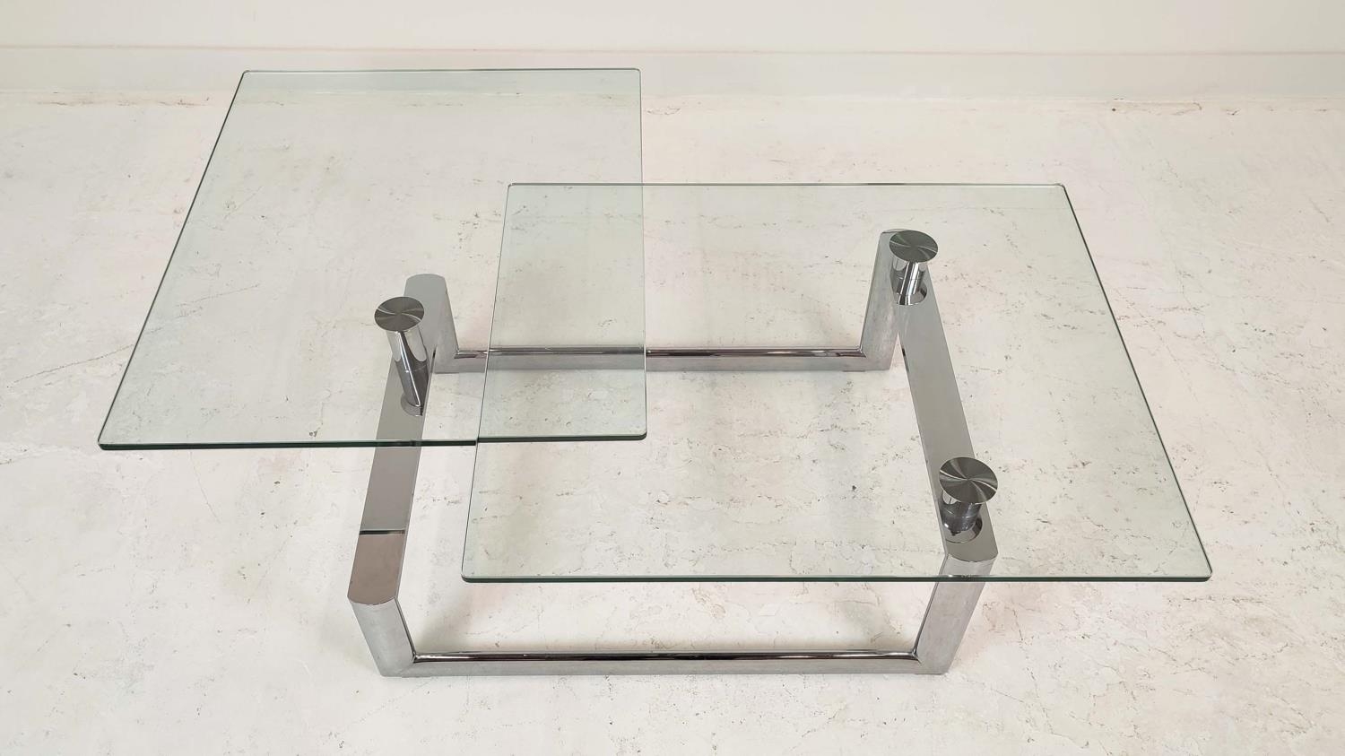 LOW TABLE, extendable twist out design, glass and polished metal, 161cm x 82cm x 40cm at largest.