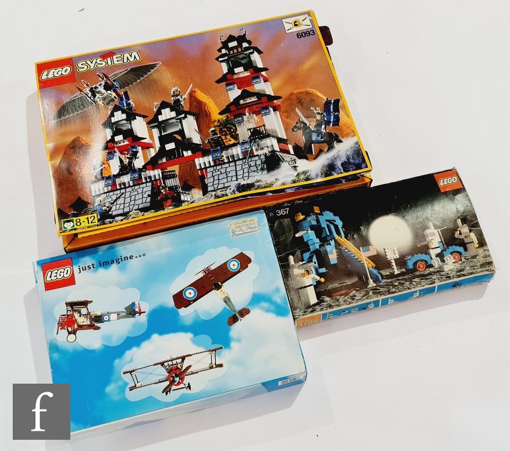 A collection of Lego, 6093 Ninja Flying Fortress, 3451 Sopwith Camel and 367 Space Moon Landing, all with boxes. (3)