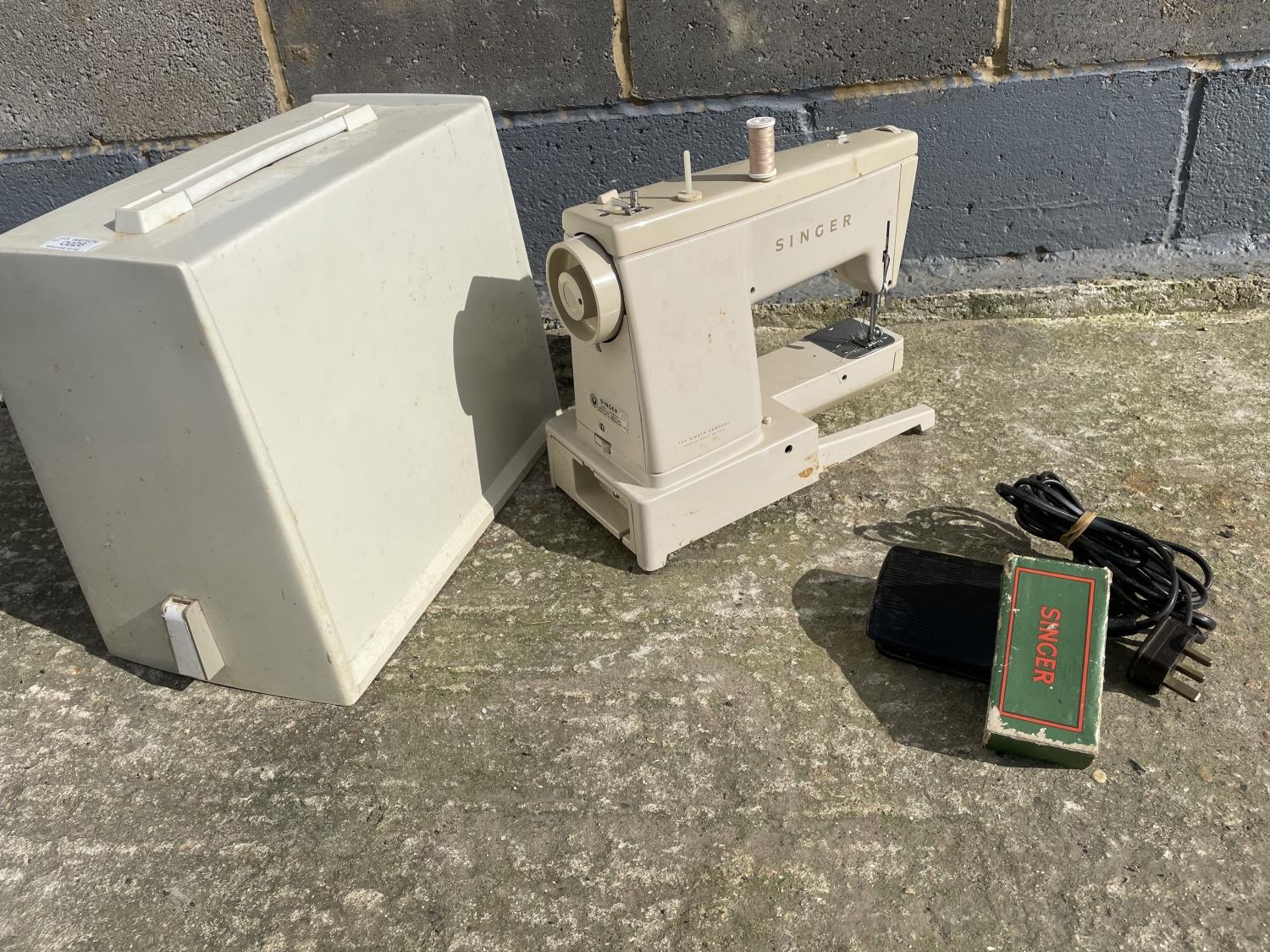 A cased singer sewing machine