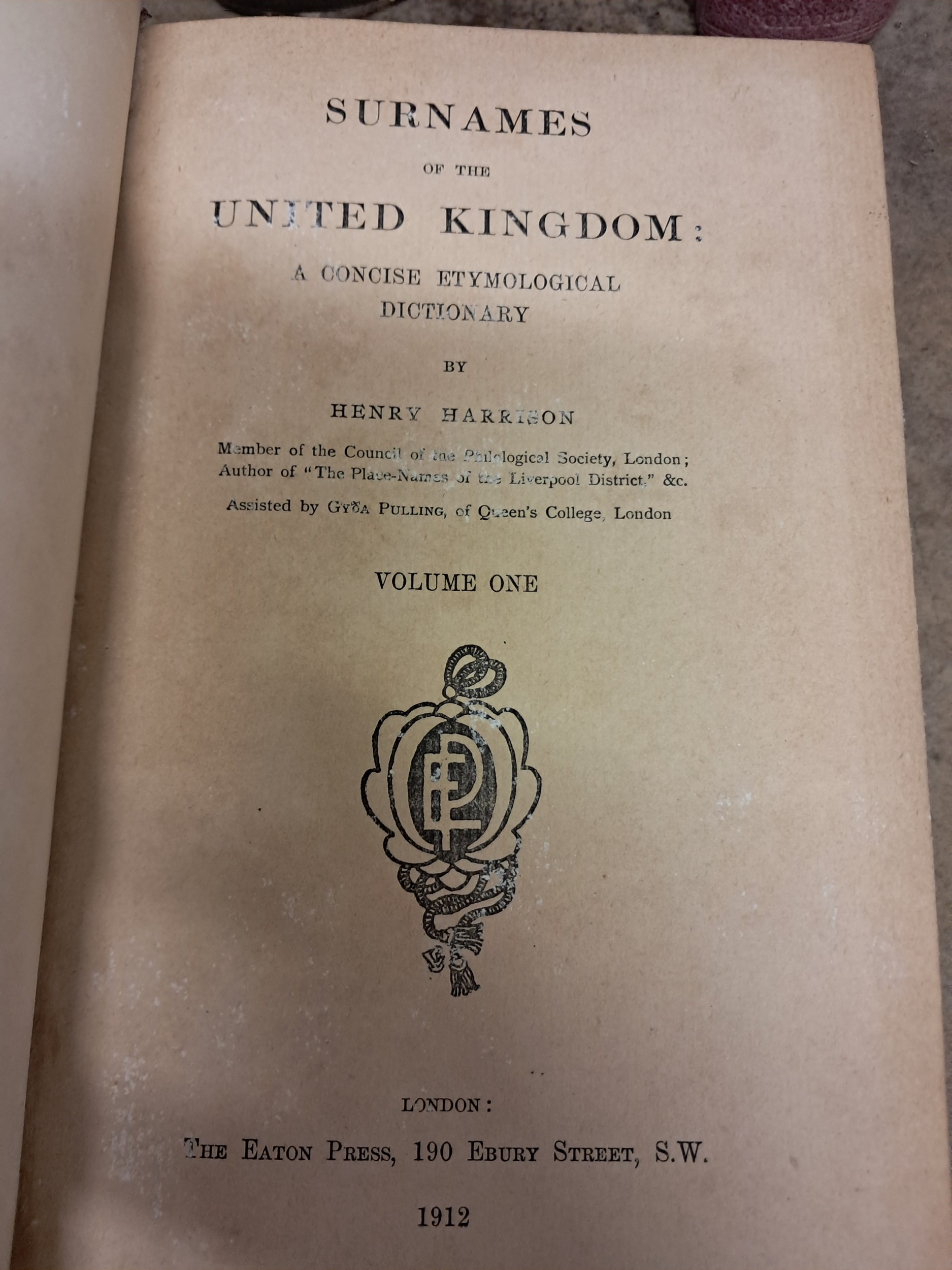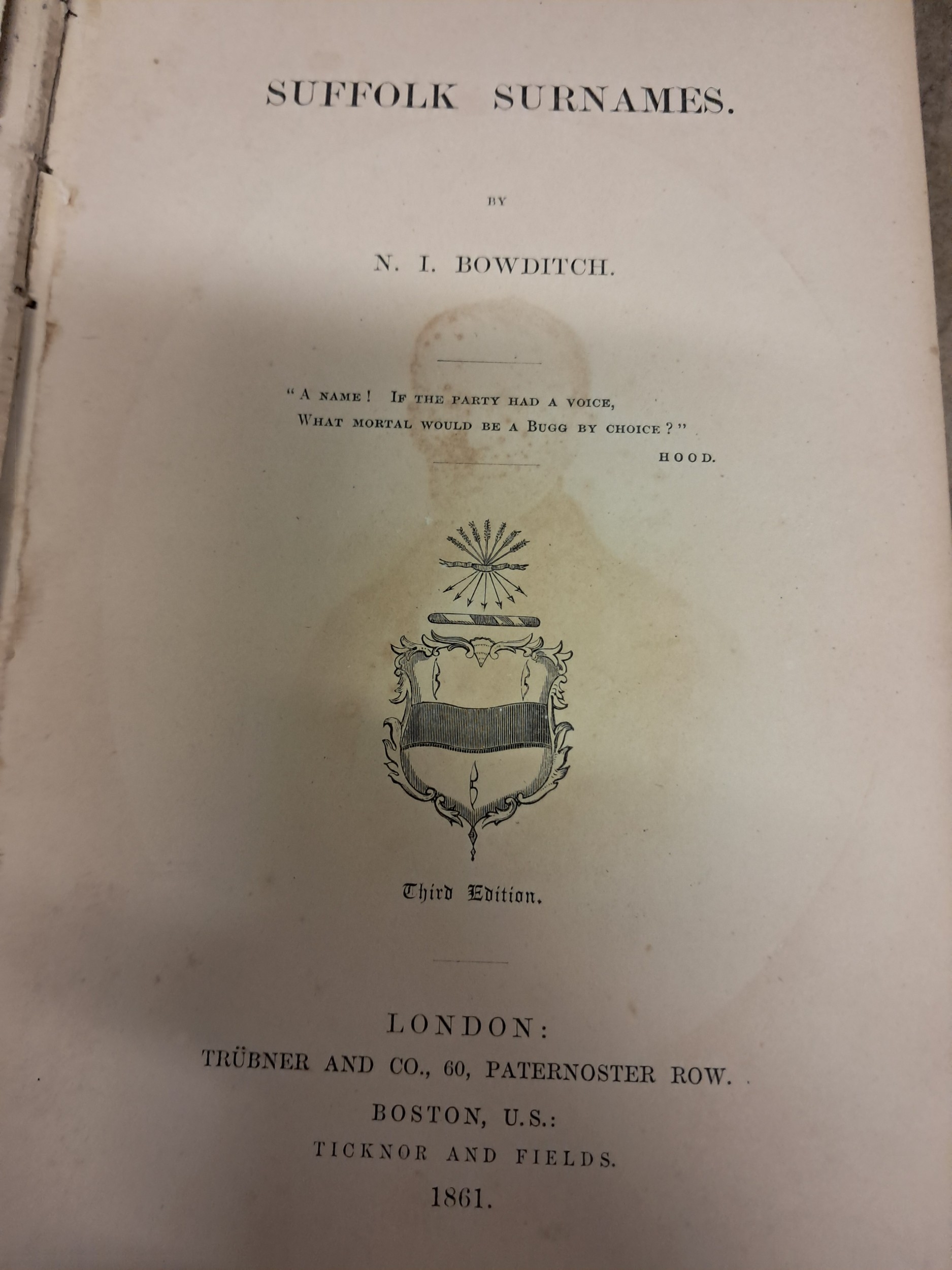 Harrison "Surnames of the United Kingdom" 2 Vols Bowditch "Suffolk Surnames" 1861