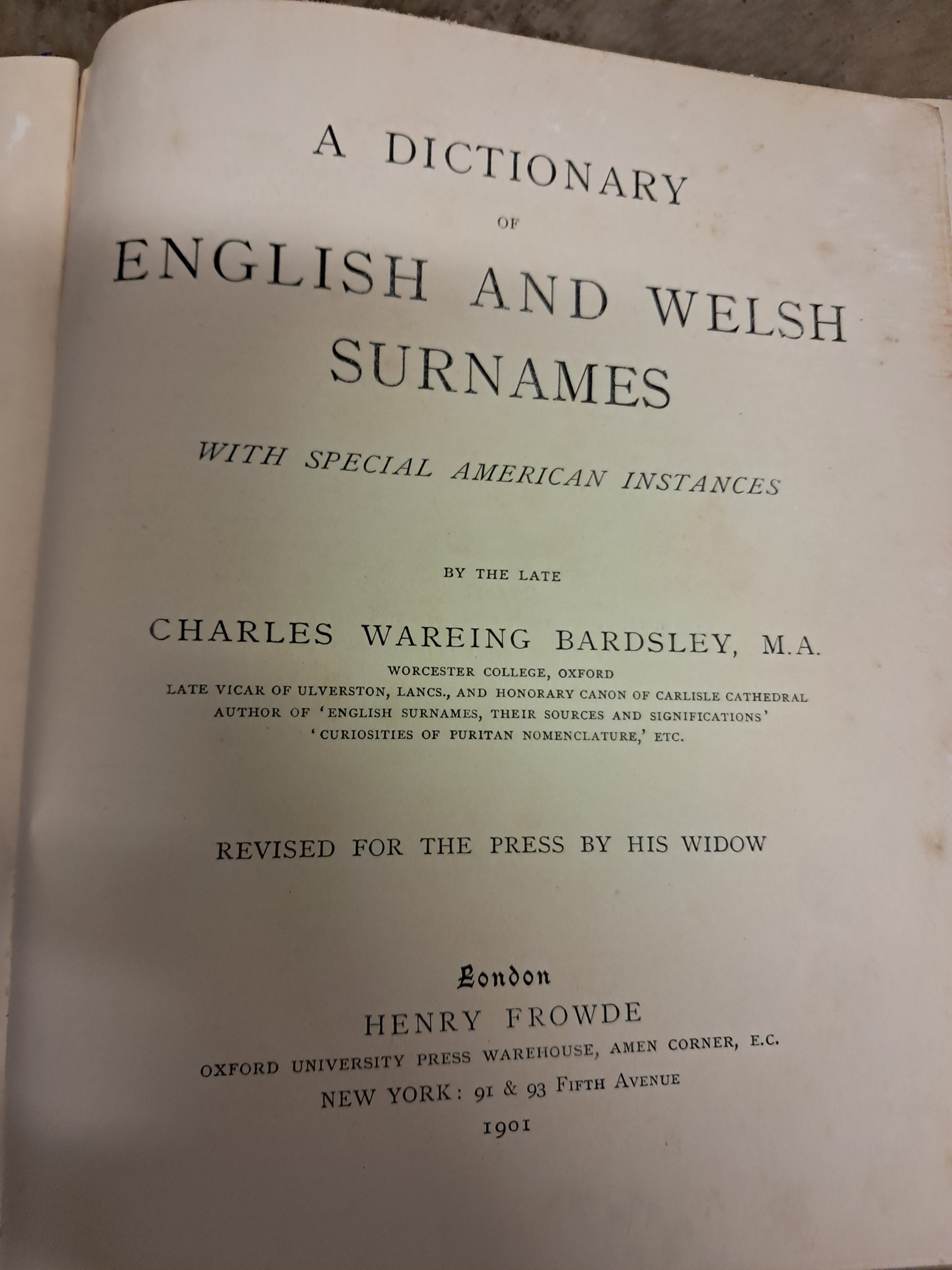 Bardsley "English and Welsh Surnames" 1901