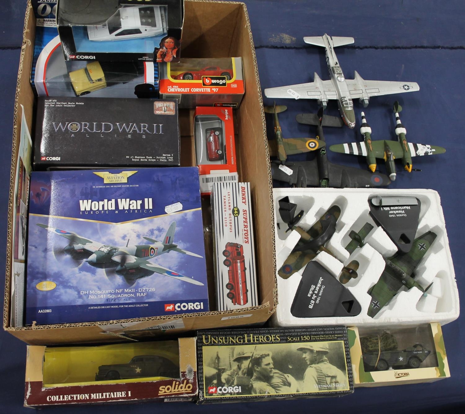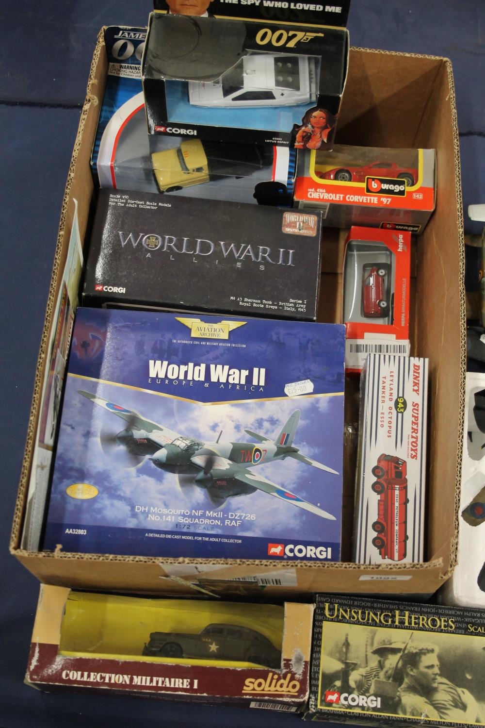 Corgi diecast model vehicles to include TY060701 Chevrolet Truck 'From Russia With Love James Bond 007', 65002 Lotus Esprit James Bond The Spy Who Loved Me, Aviation Archive AA32803 DH Mosquito NF mkII DZ726 No141 Squadron RAF and other collector's models.