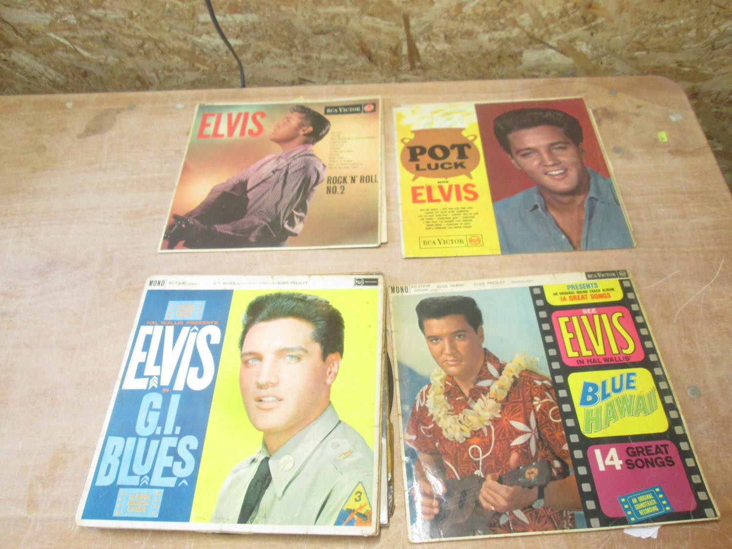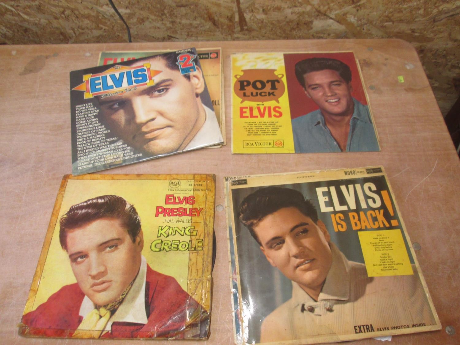 7 x Elvis Presley records : Rock 'n' Roll No 2 (RCA issue scuffed and scratched), King Creole (RCA issue scuffed and scratched), Pot Luck (RCA issue scuffed and scratched), Elvis is Back (GF, mono lighter scuffs and scratches), Blue Hawaii (RCA issue , light scuffing and scratches), GI Blues (RCA issue , light scuffs and light scratches)