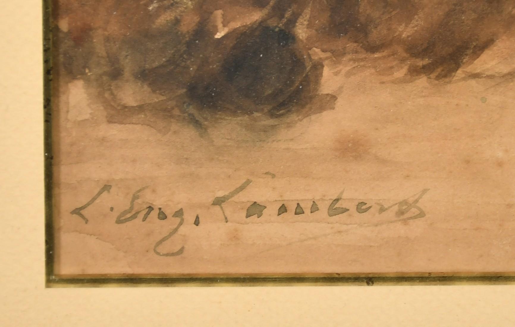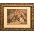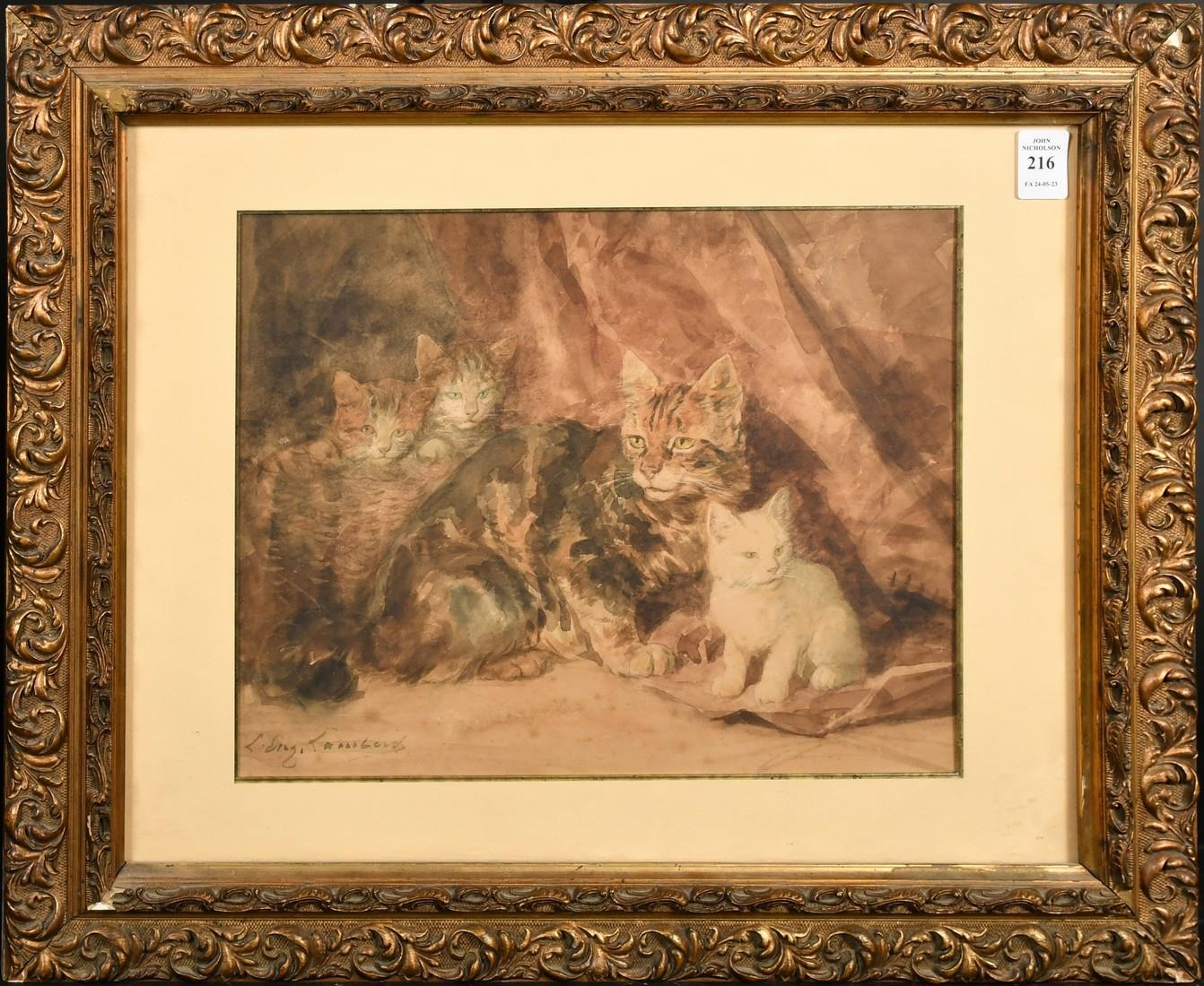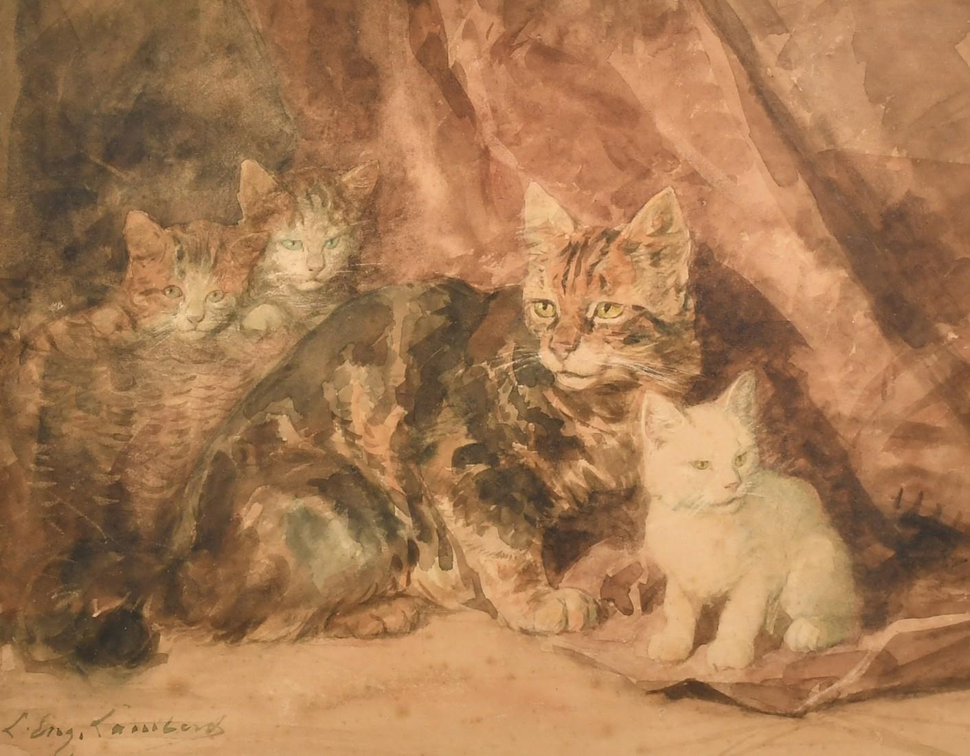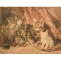 Louis Eugene Lambert (1825-1900) French, A tortoiseshell cat with kittens, watercolour, 9.75" x 12.5", (25x32cm).