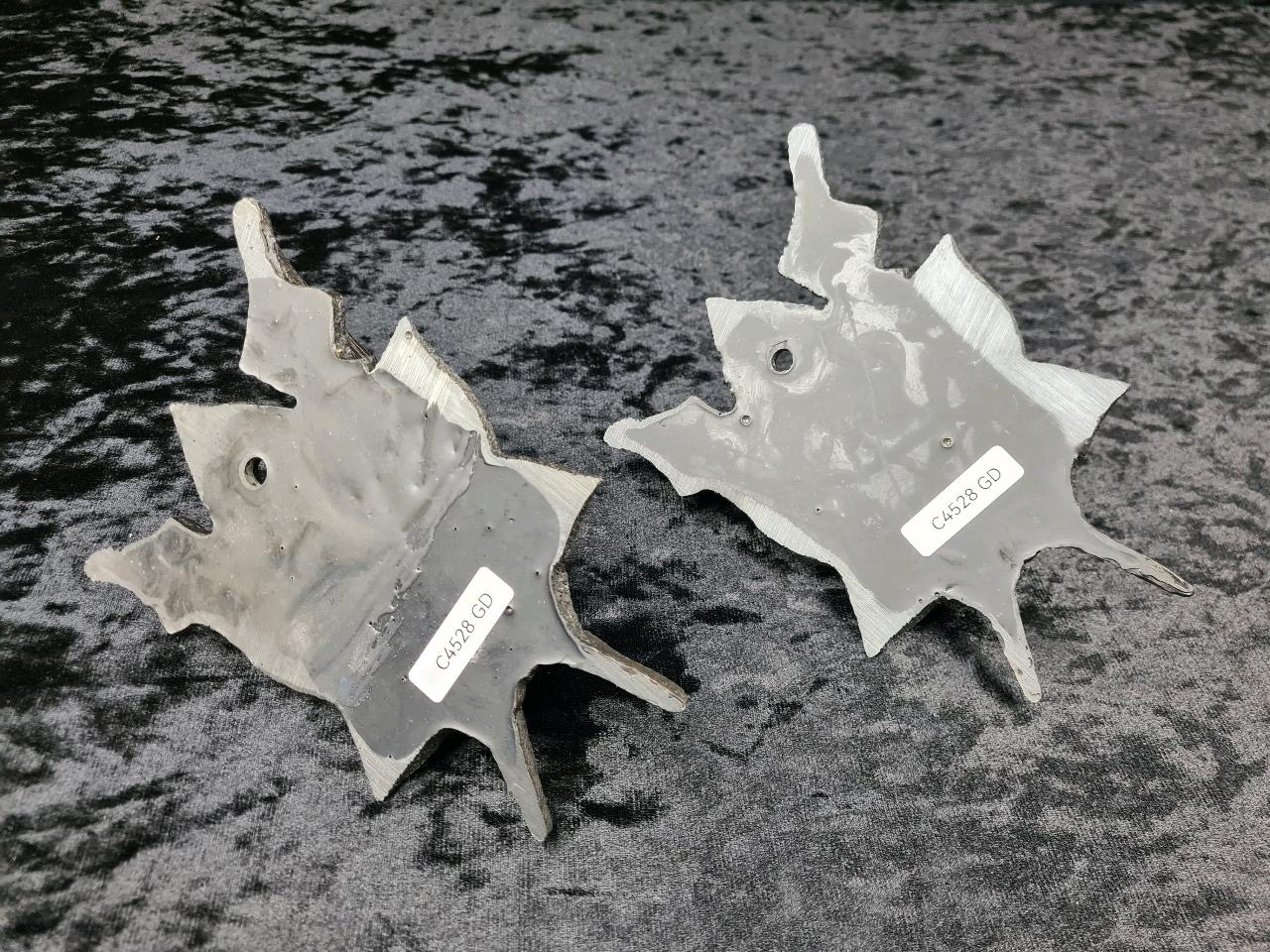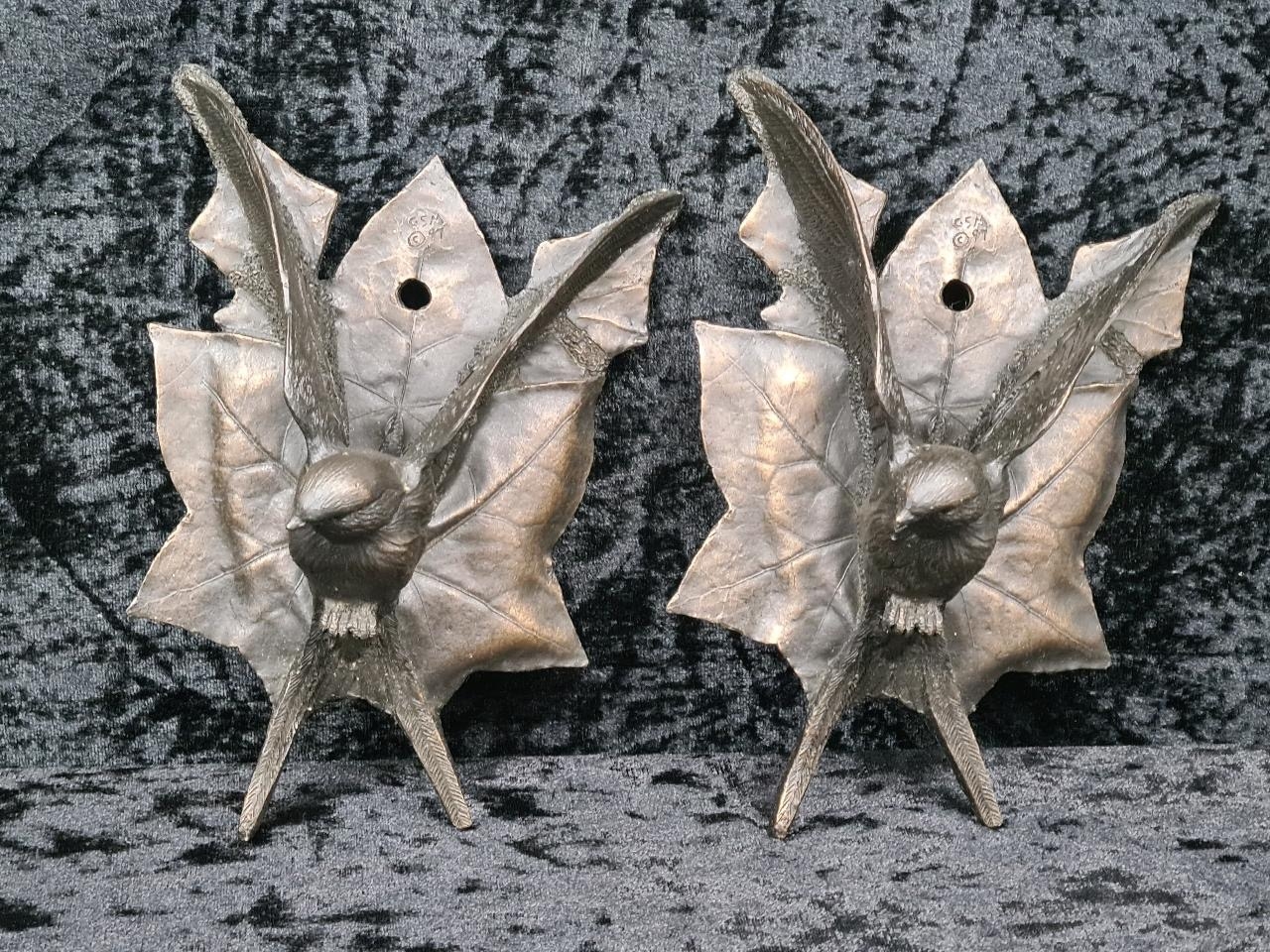Really unusual pair of black ceramic bird wall pockets. Each approx H19cm.