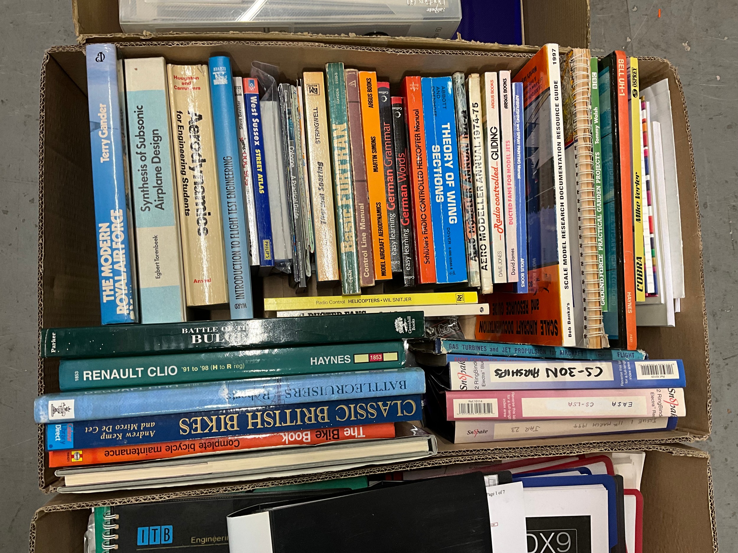 4 BOXES OF BOOKS MODEL BLUE PRINTS ETC