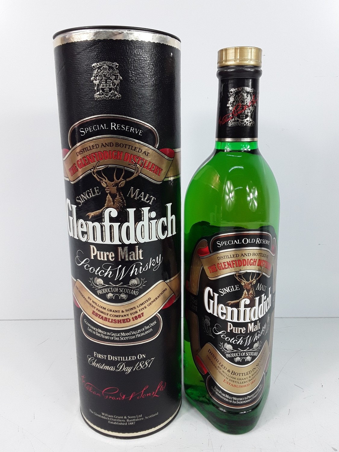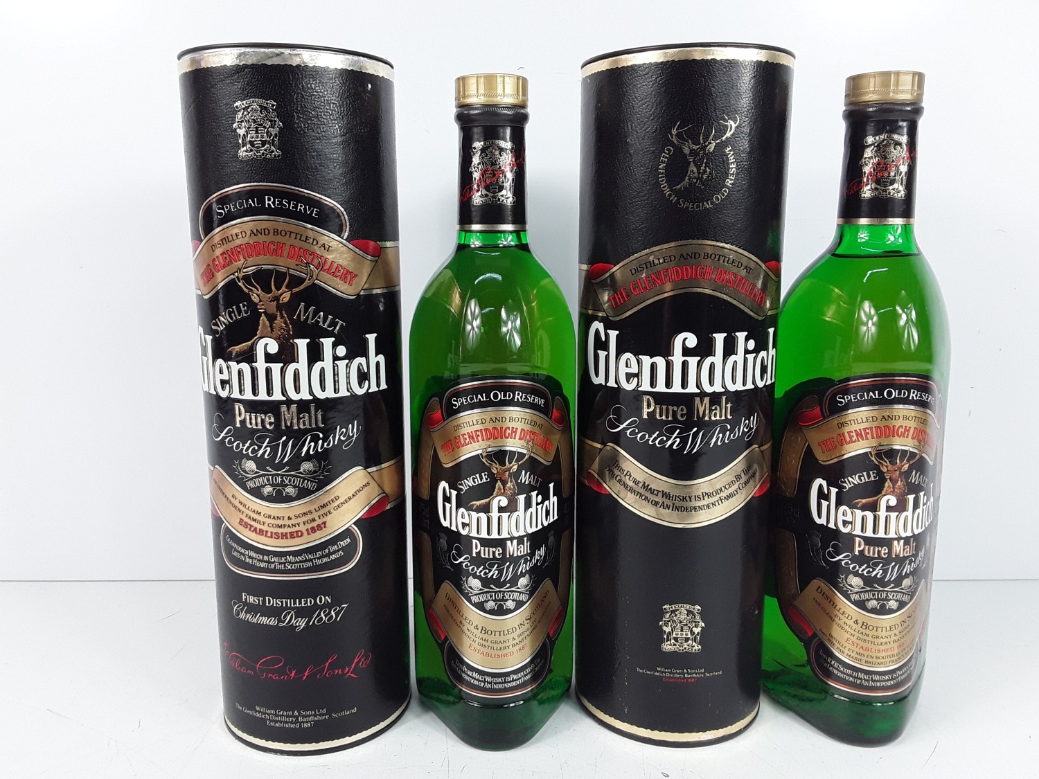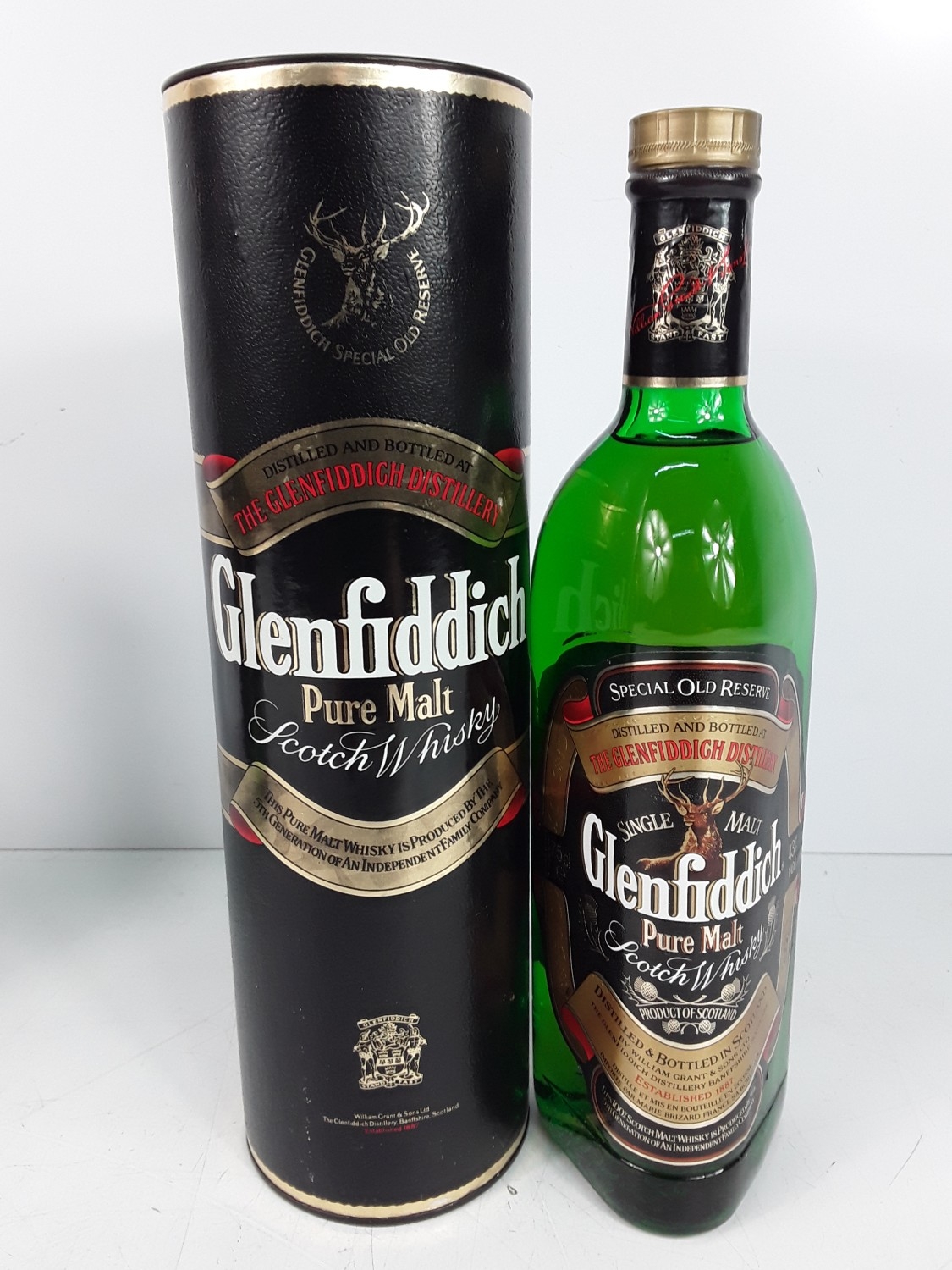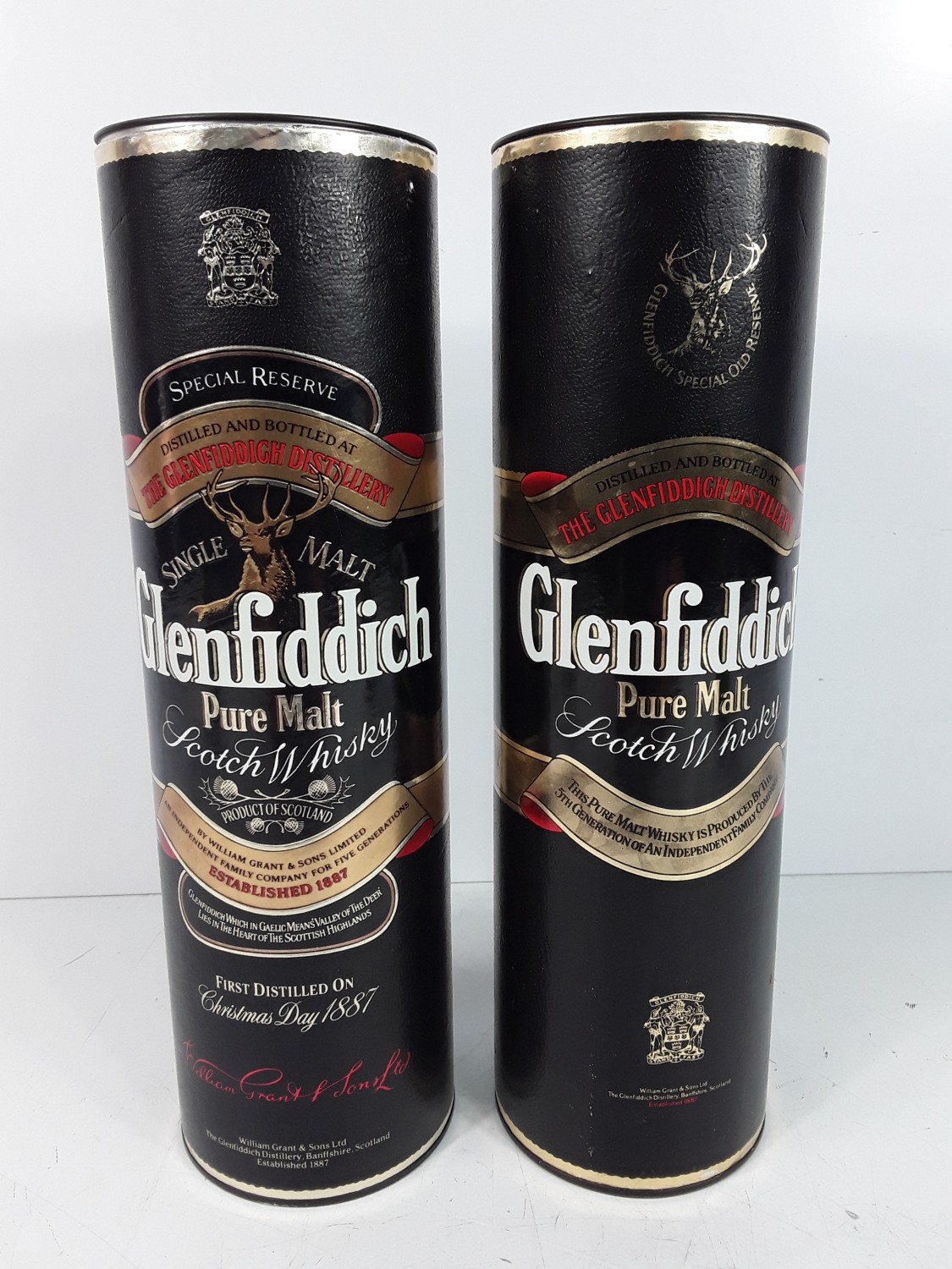 Two tubed bottles of Glenfiddich Special Reserve Pure Malt, 75cl, one 40% and the other 43%, 1980's