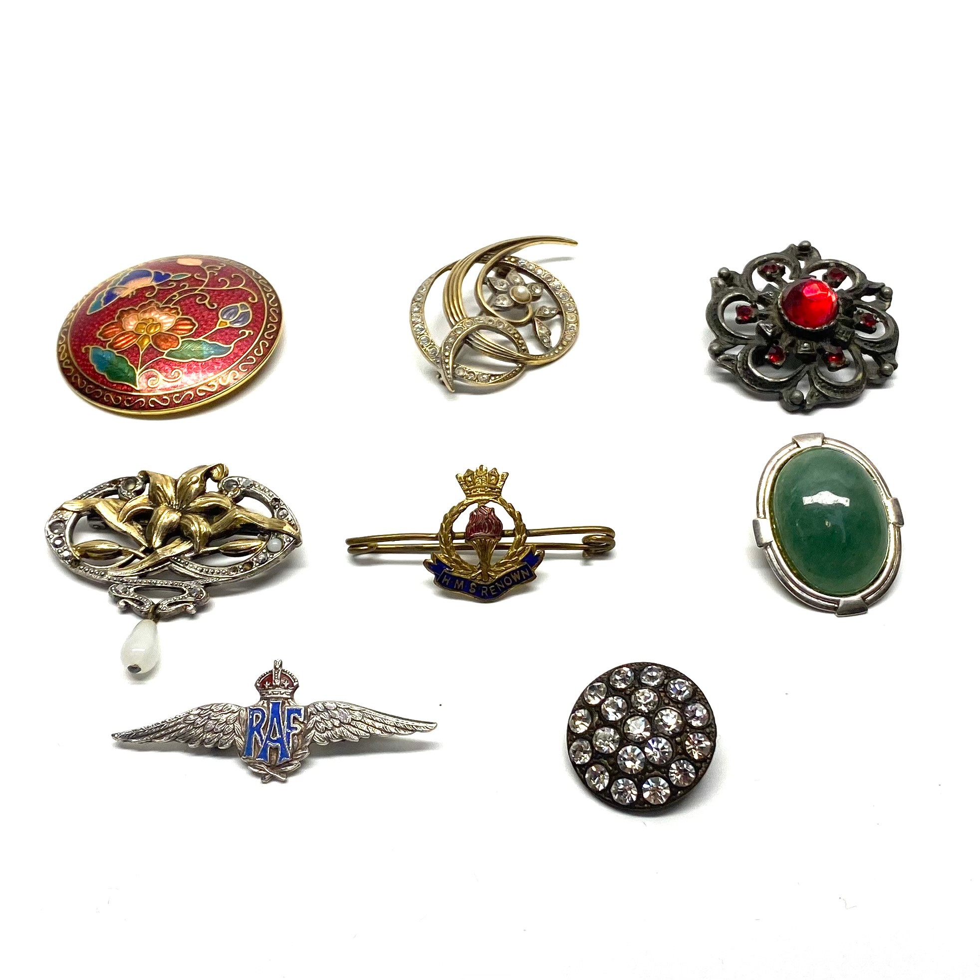 Severn vintage brooches including an RAF silver sweetheart brooch.