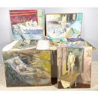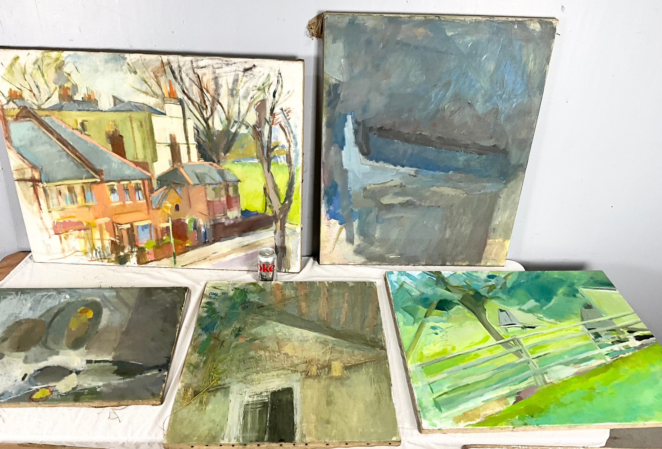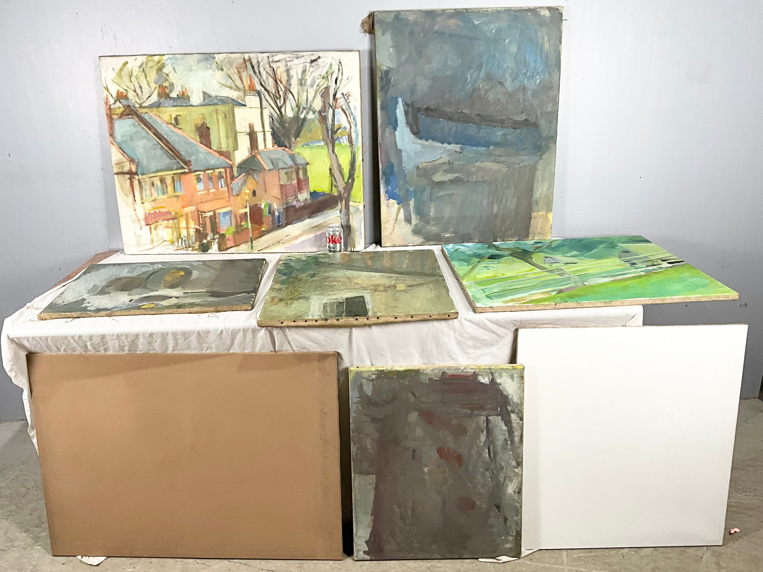 QUANTITY OF OIL ON CANVASSES MOSTLY SIGNED TO THE VERSO A HAYES LARGEST APPROXIMATELY 92cm x 72cm (8)