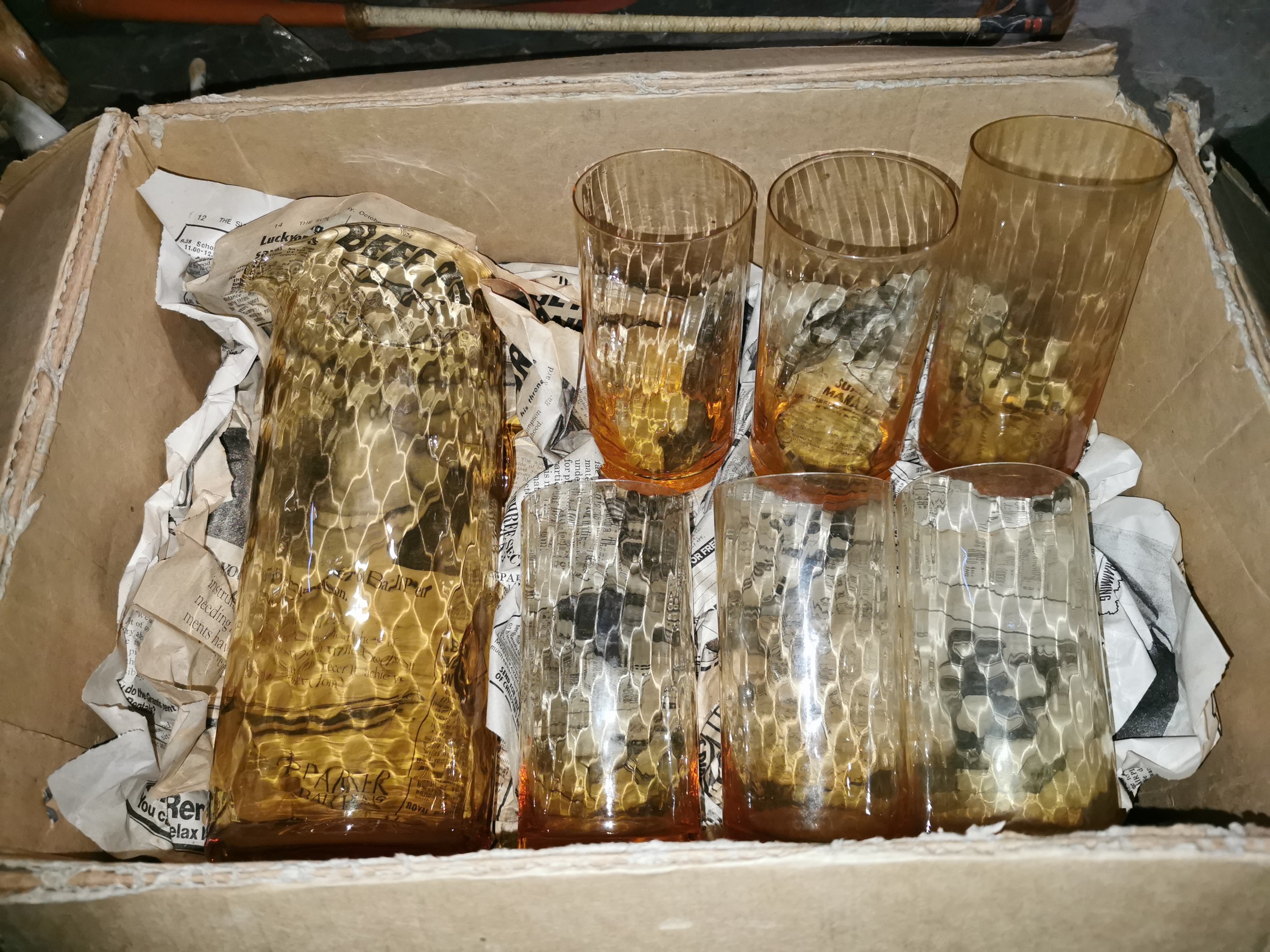 Vintage smoked glass lemonade set being jug and 6 x glasses