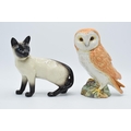 Beswick Barn Owl 1046 together with Siamese cat (2).