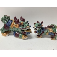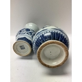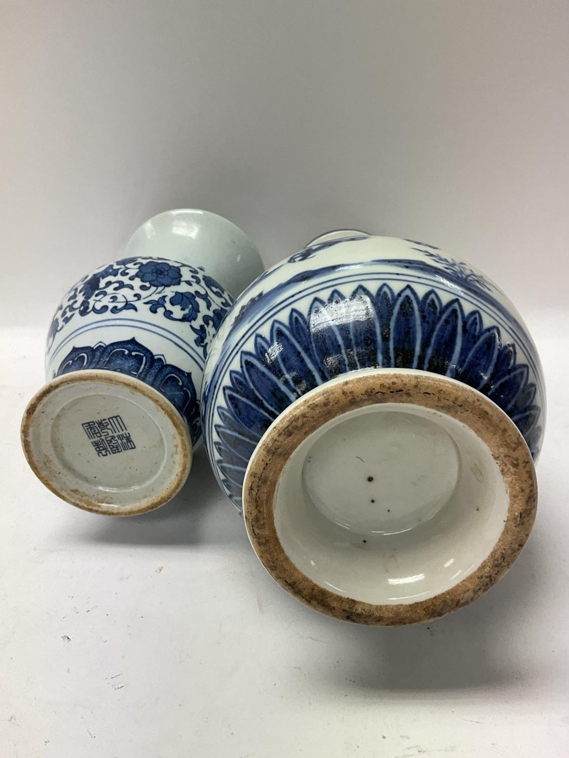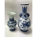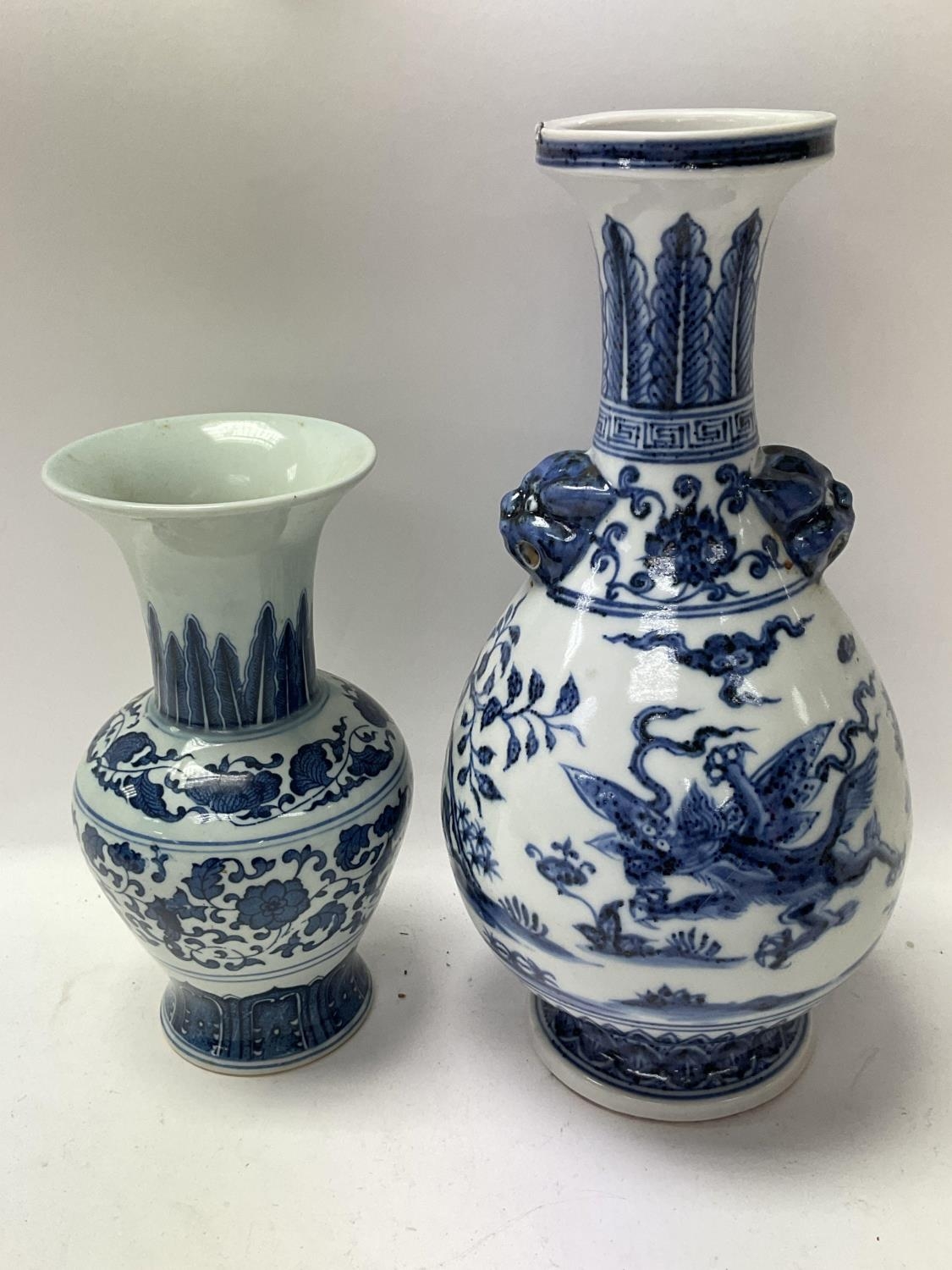 Two Chinese reproduction vases, one measuring in height approximately 11.5inches, the other measuring approximately 8 inches.
