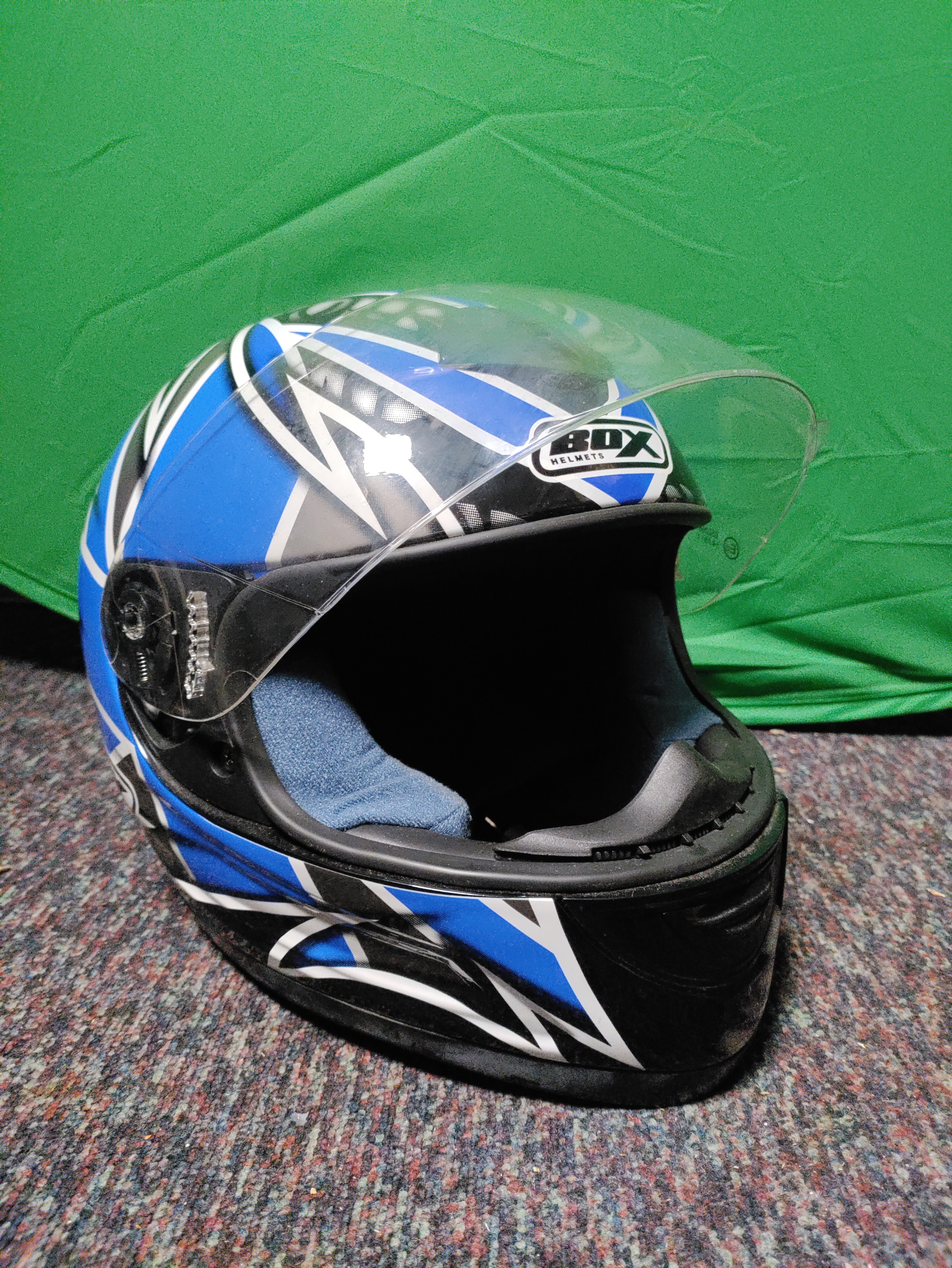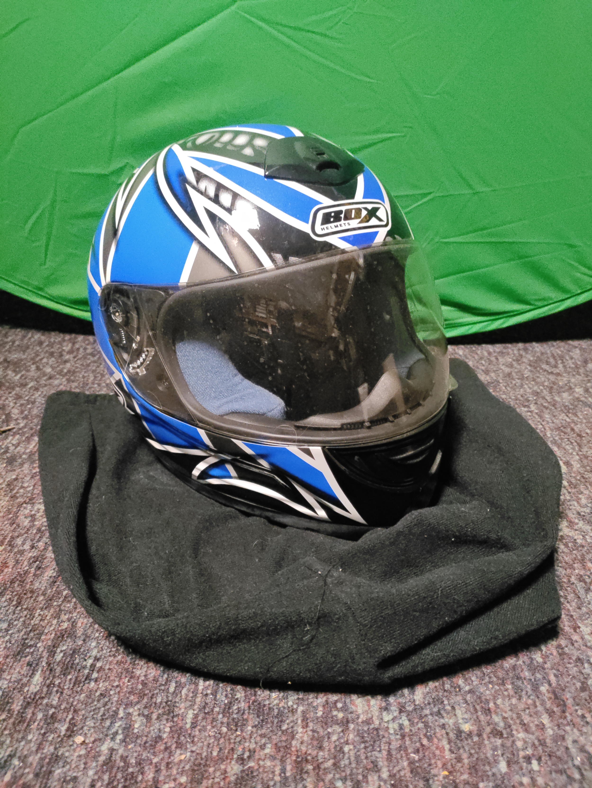 A Box helmets full-face motorcycle helmet & box branded bag. (Size XL)