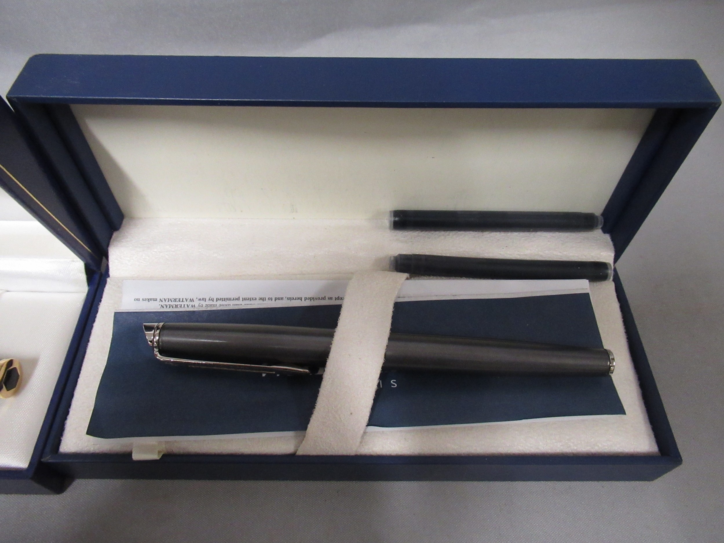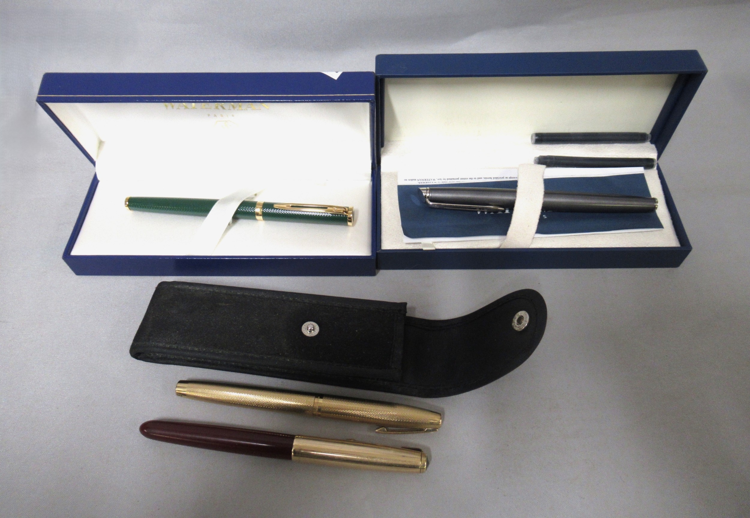 Two cased Waterman fountain pens, together with two other pens