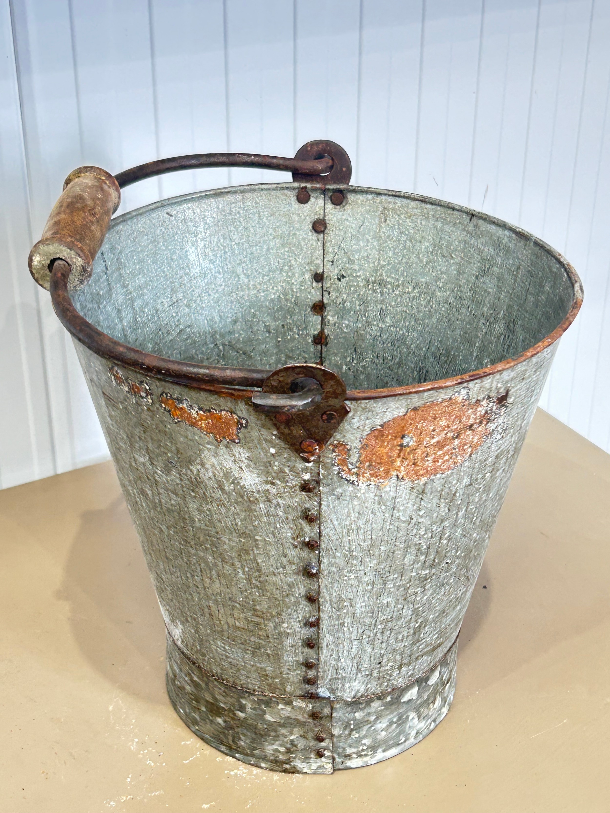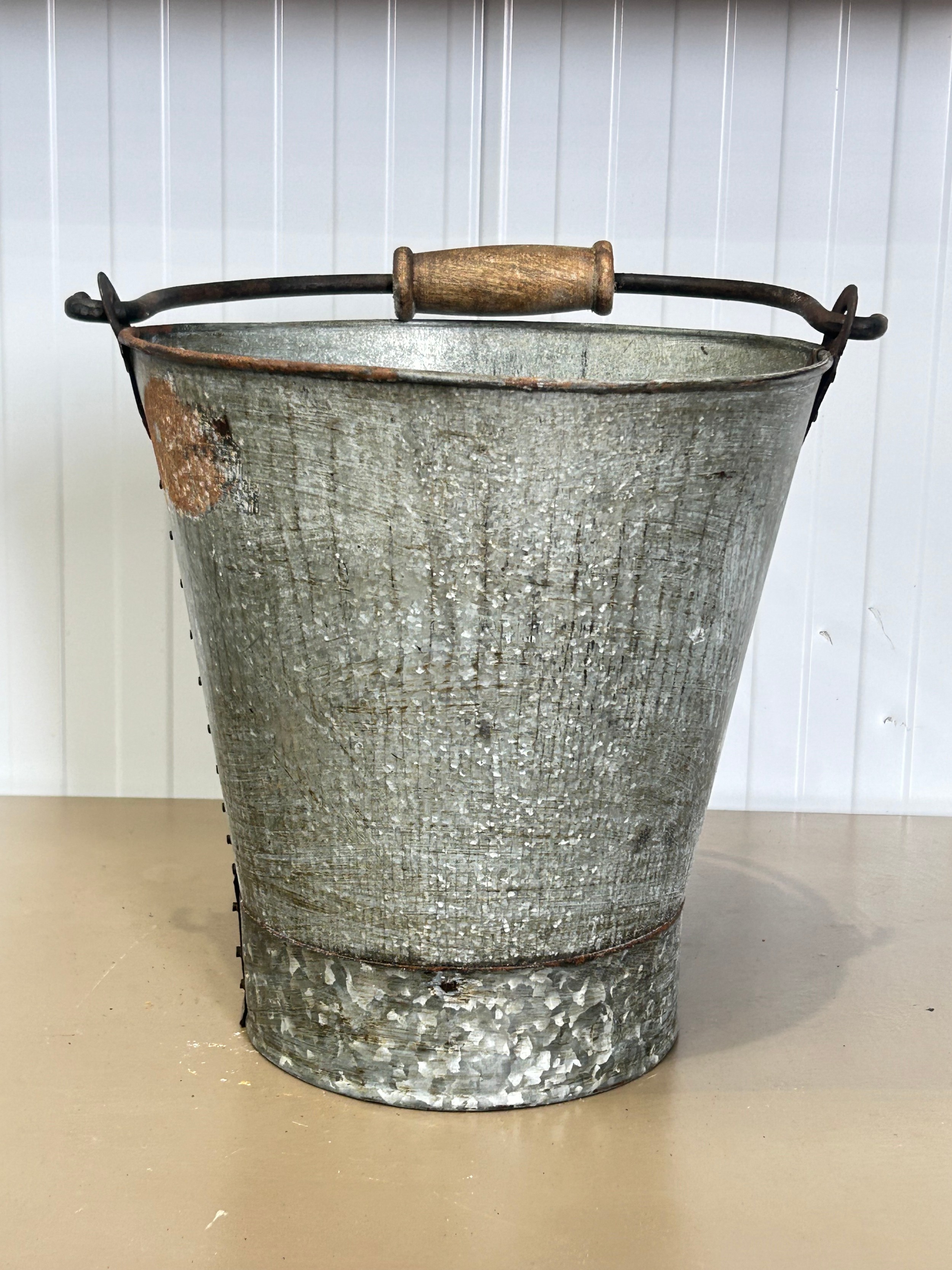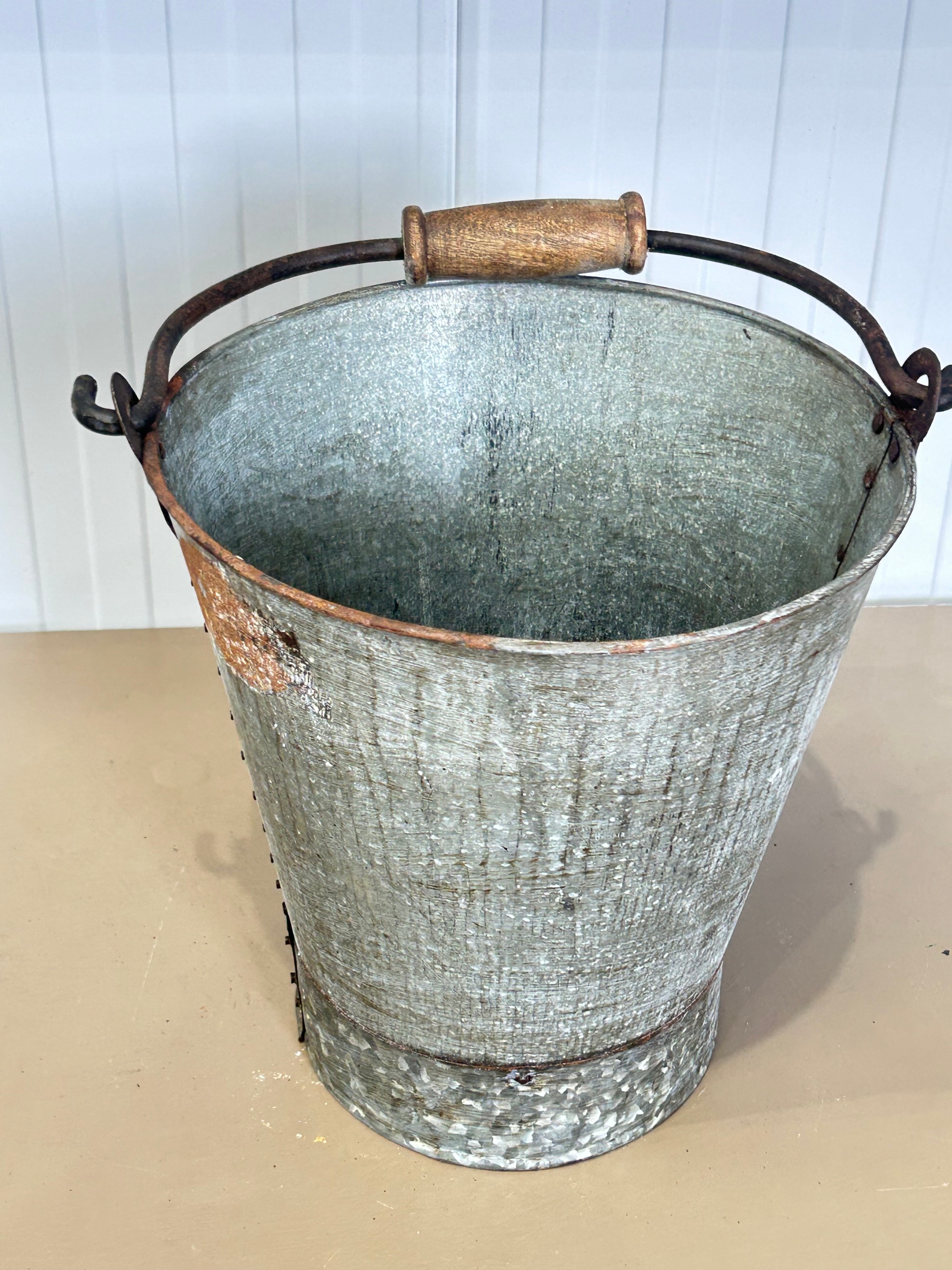 Galvanized metal pail with wooden handle