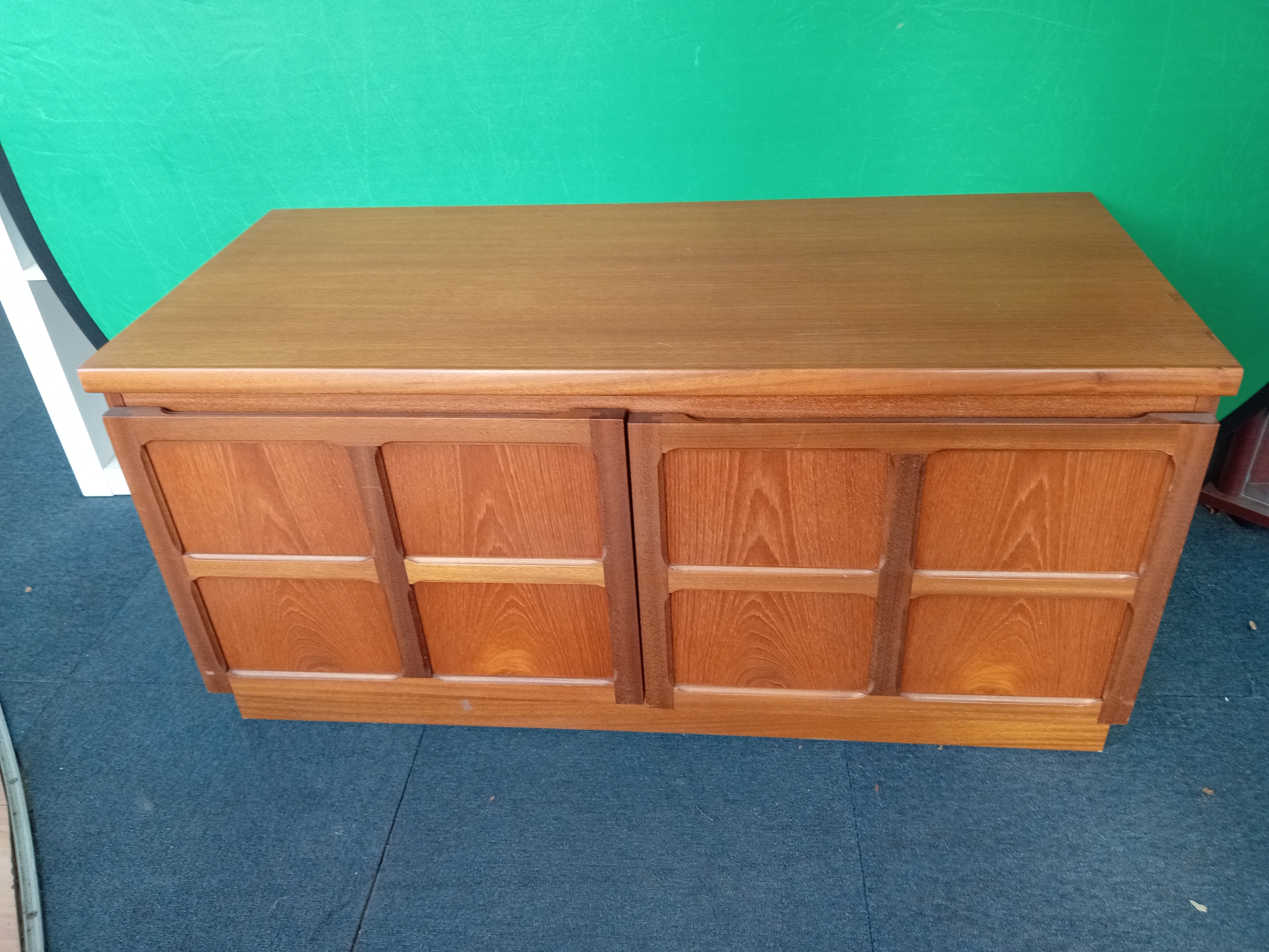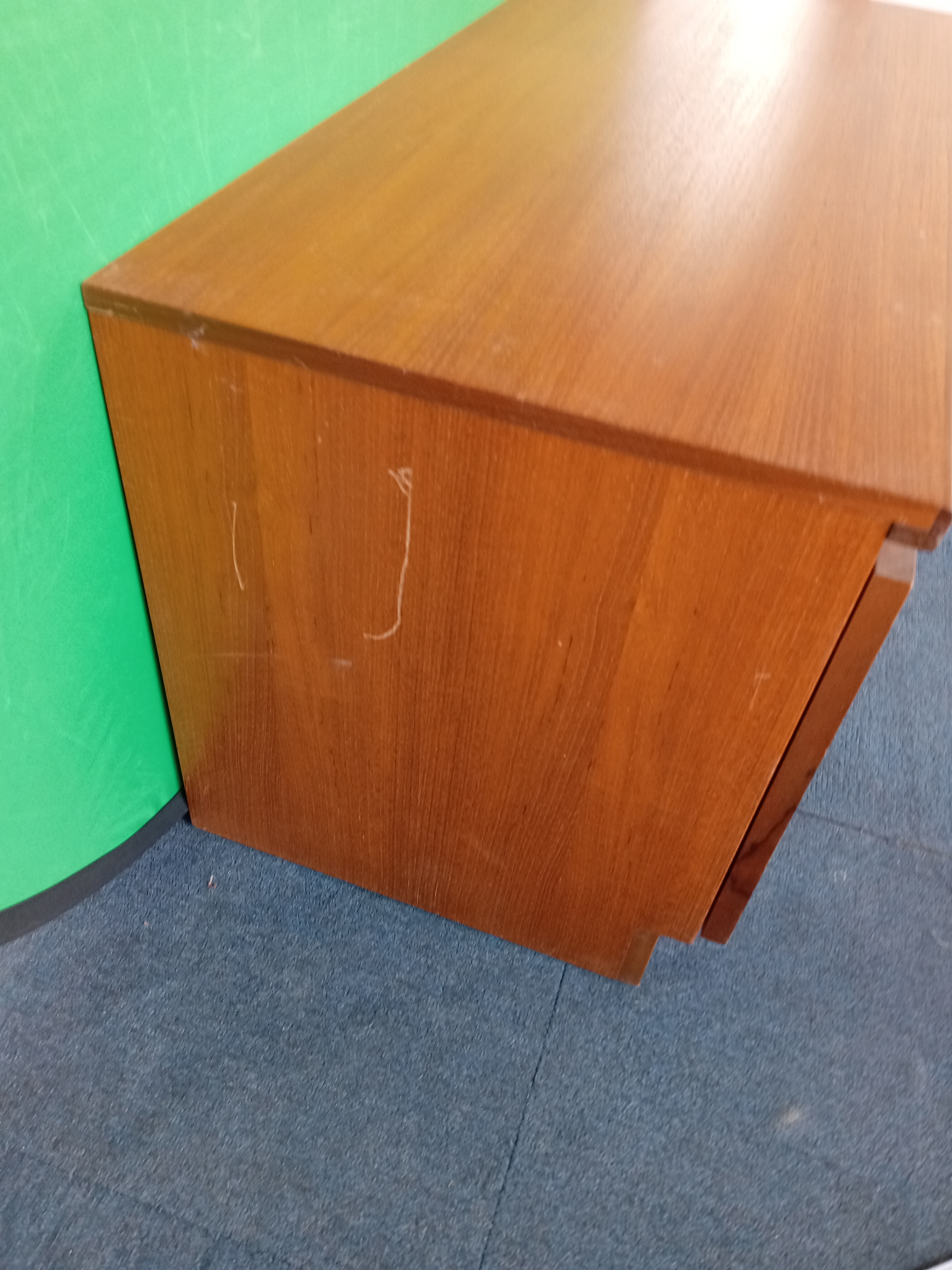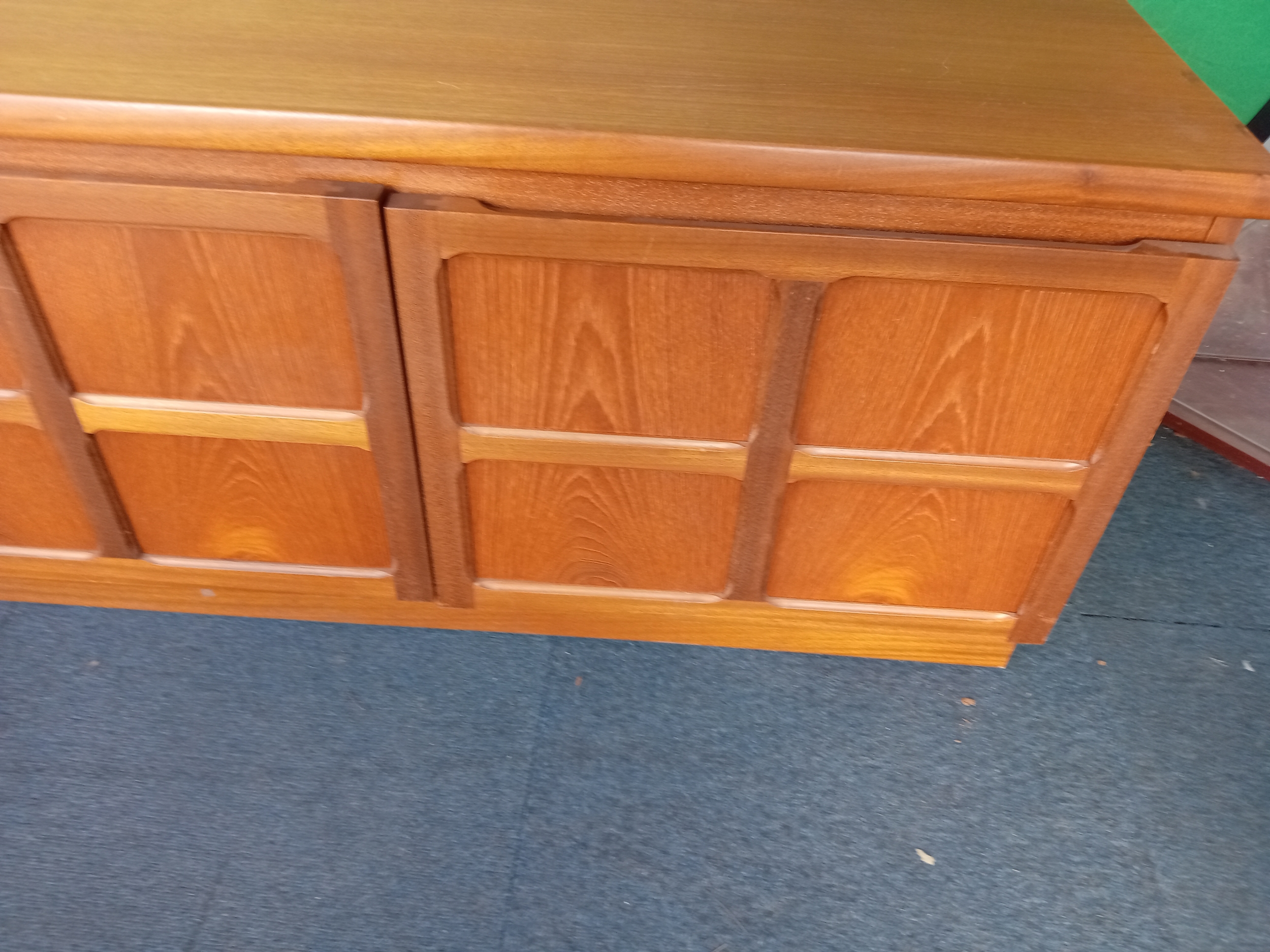 A mid century Modern MCM teak Nathan side board / drinks cabinet. Few scuffs but overall good condition. Missing one shelf inside. Measures L 102cm x D 45cm x H 51cm.