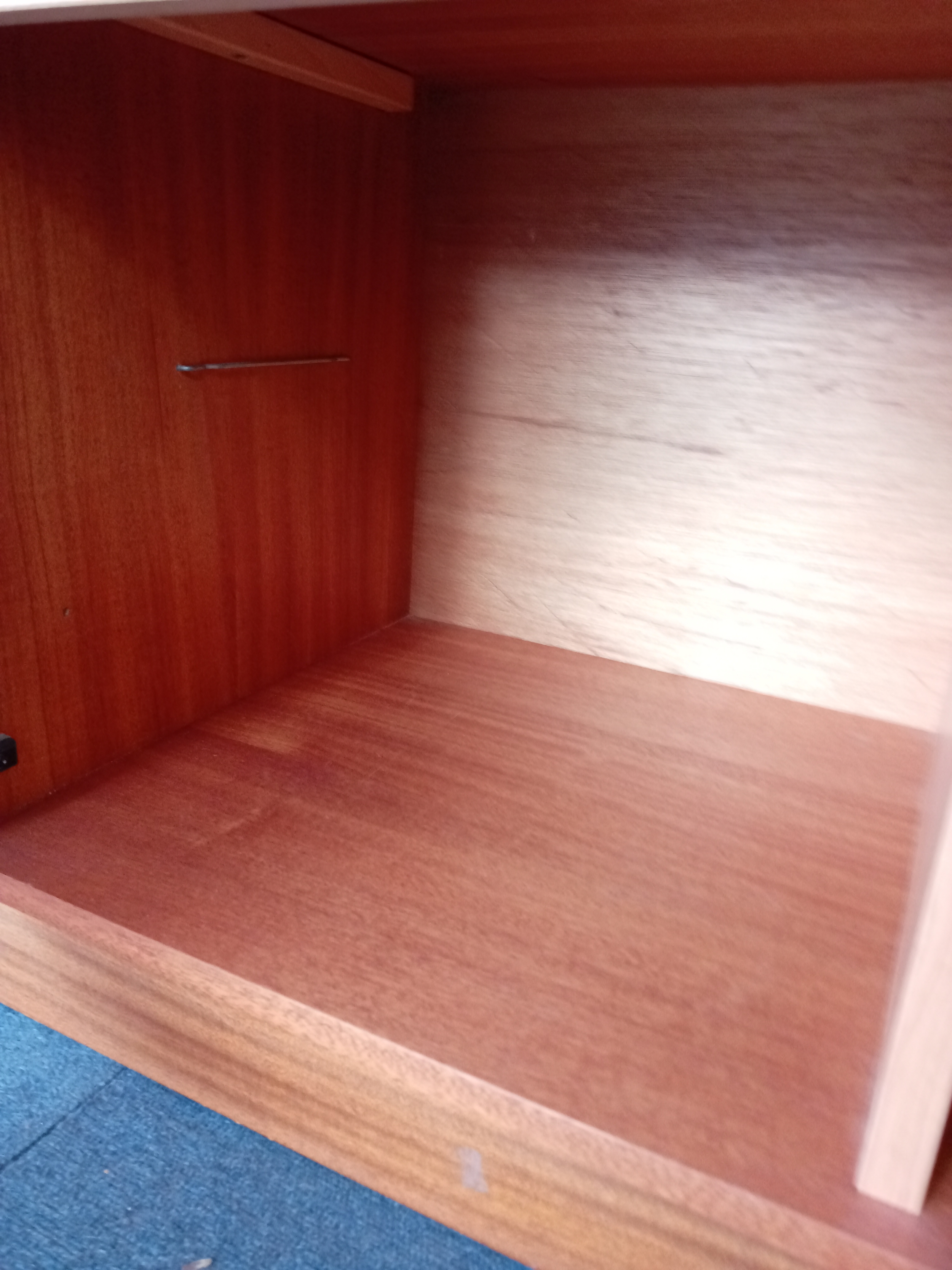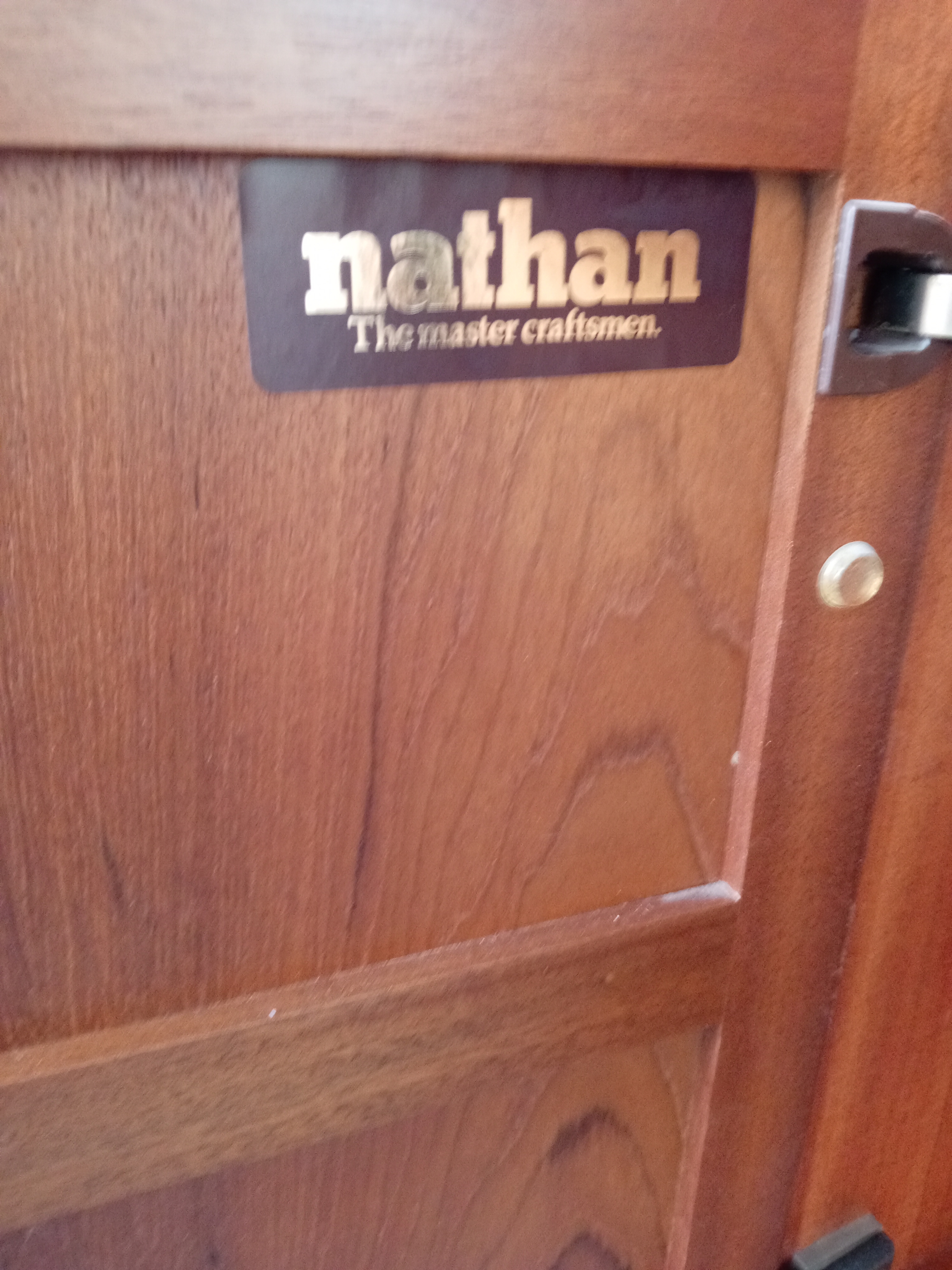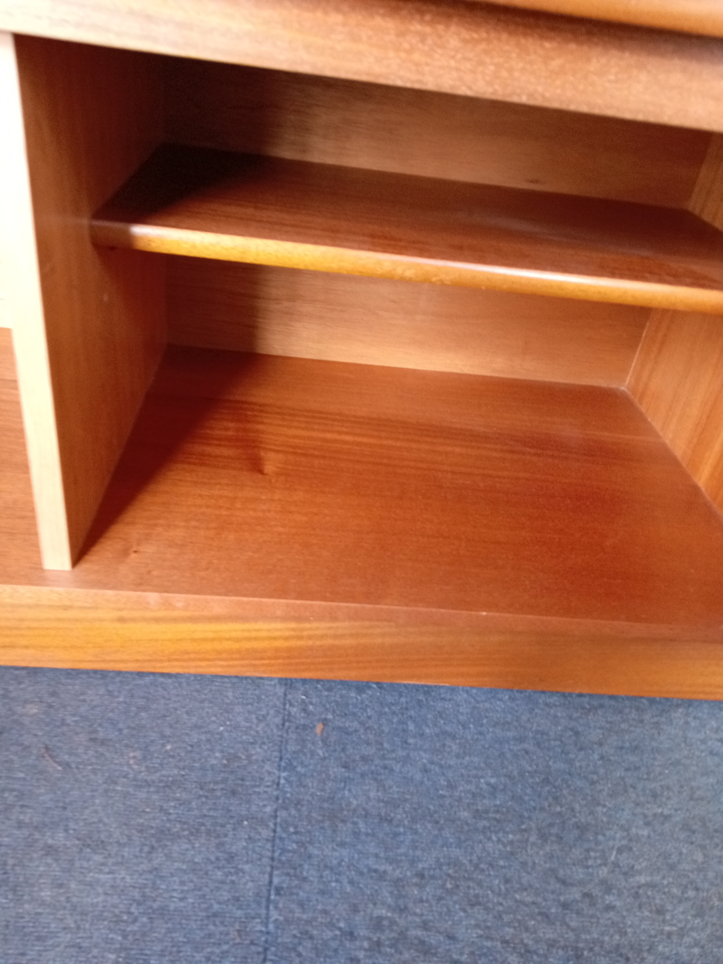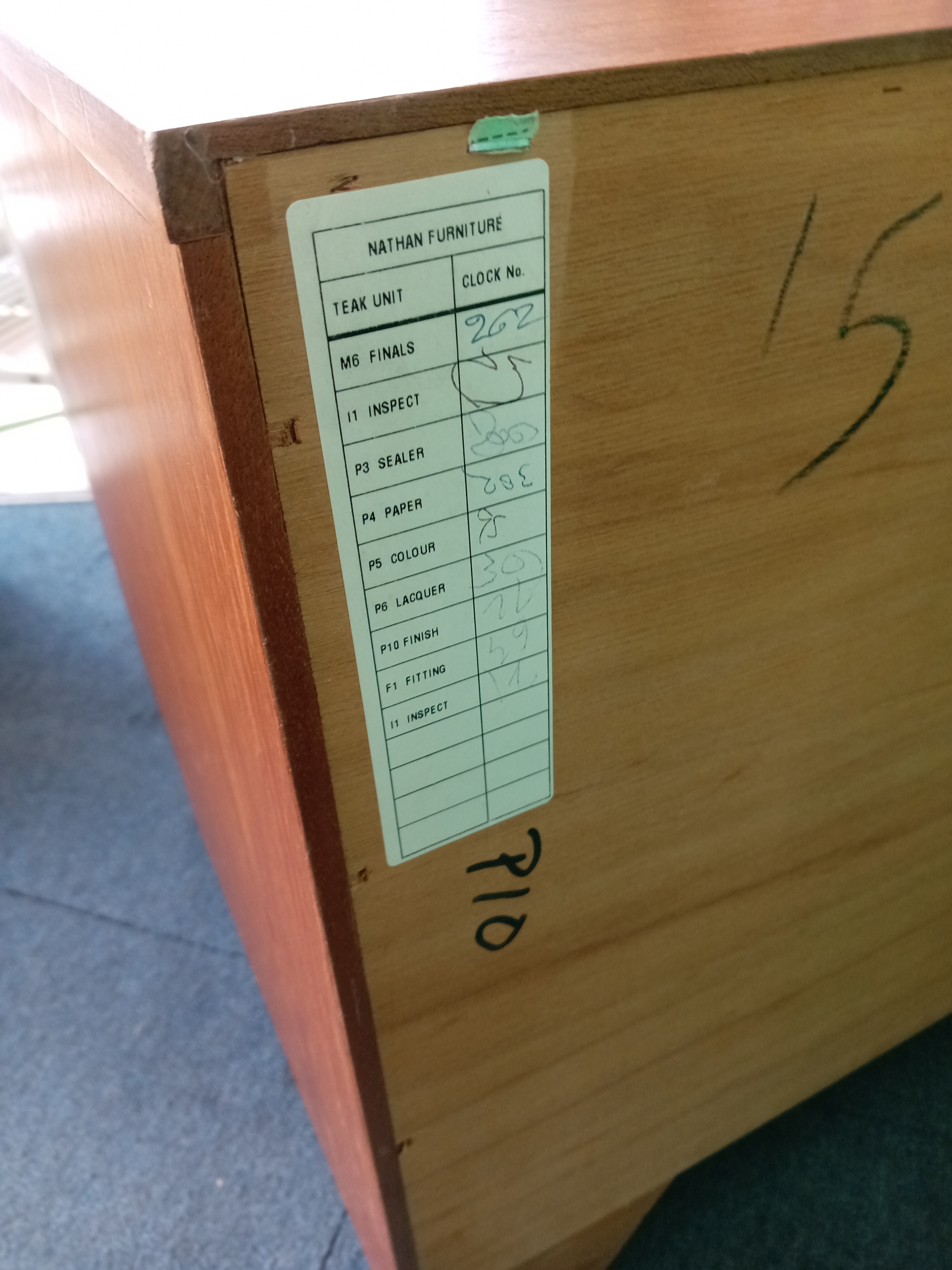 A mid century Modern MCM teak Nathan side board / drinks cabinet. Few scuffs but overall good condition. Missing one shelf inside. Measures L 102cm x D 45cm x H 51cm.