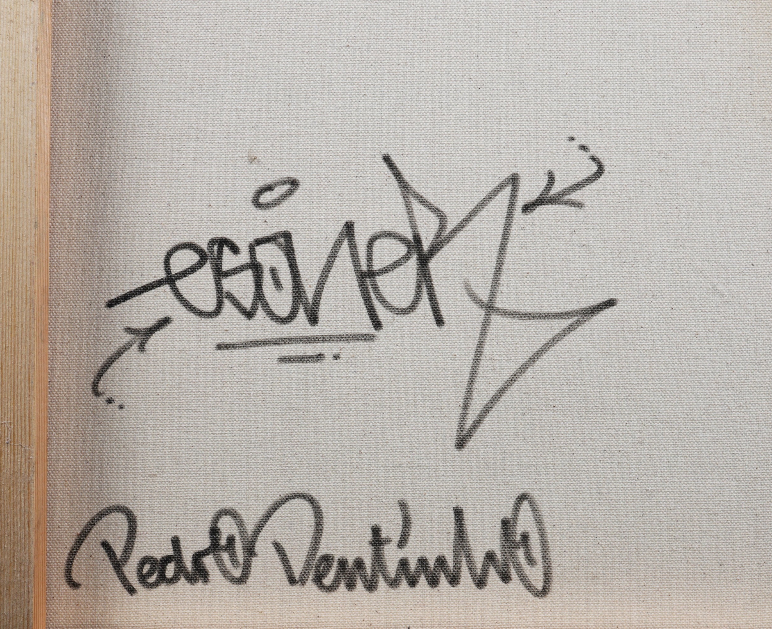PEDRO DENTINHO (B. 1972). ABSTRACT. oil on canvas, 71cm x 71cm, framed.