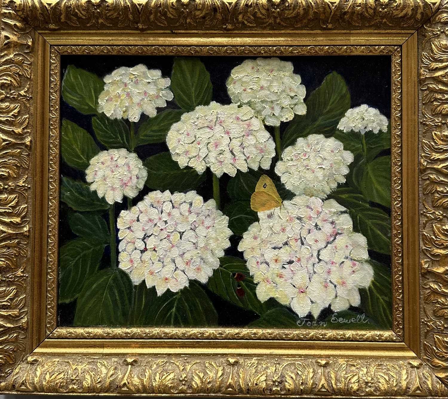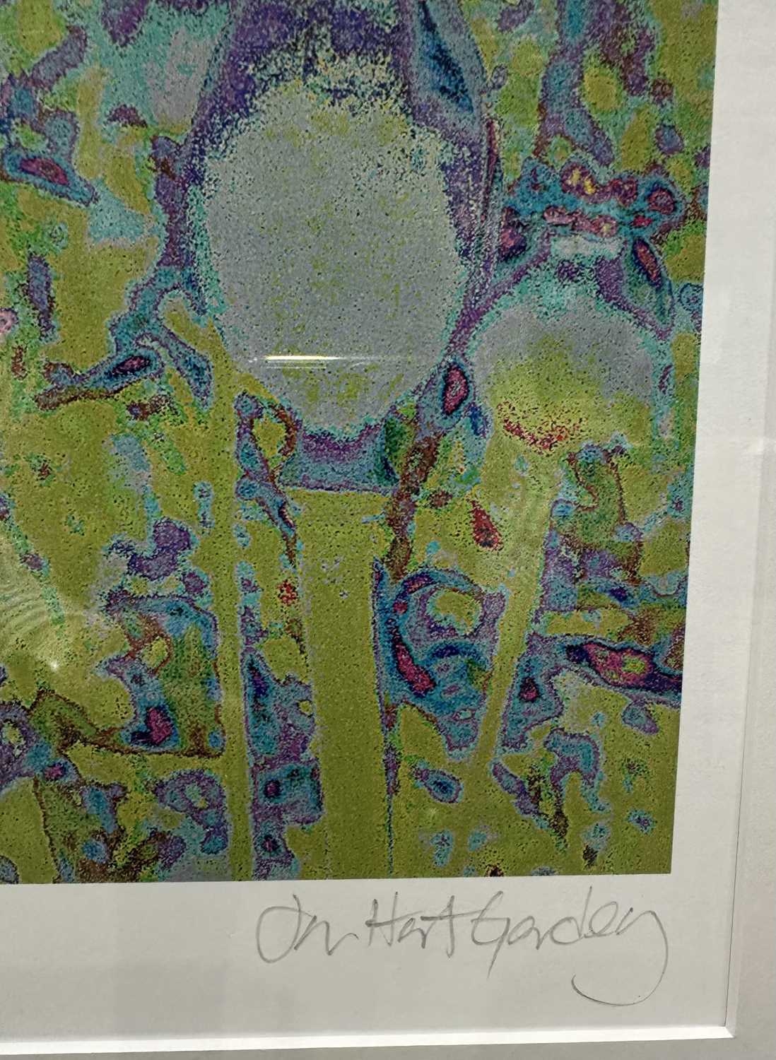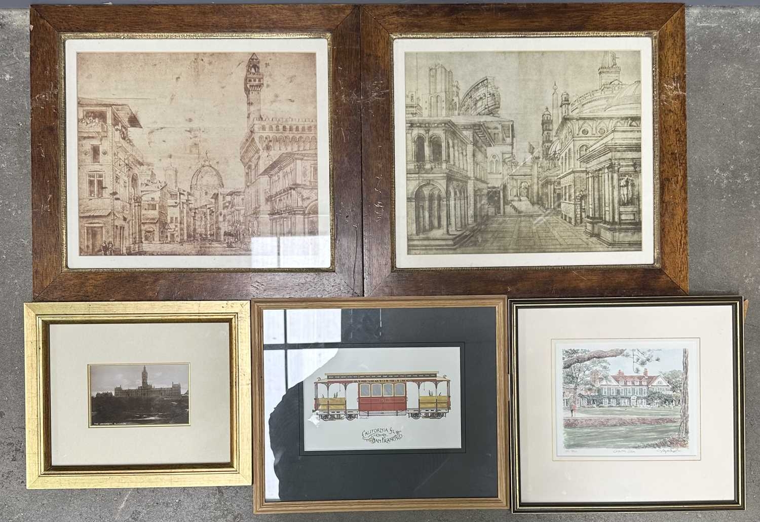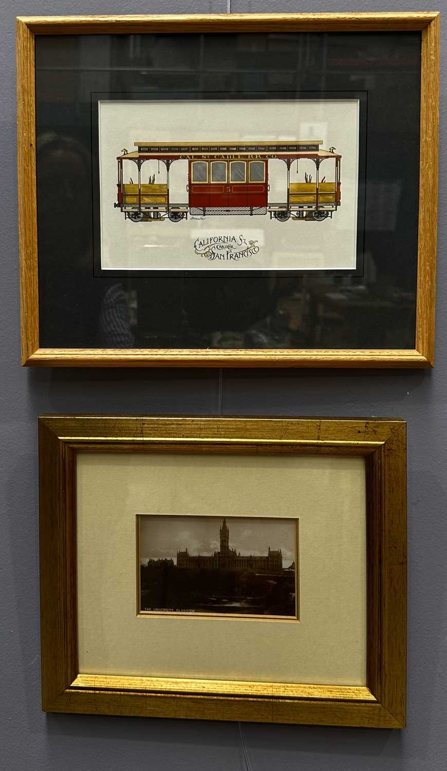Jon Hart Gardey, (American, 1931-2009) a digital print of a poppy, mounted and framed in a light oak frame, 50cm x 38cm, together with a hand coloured etching of San Francisco in 1851 with Yerba Buena Island, an hand coloured photo-lithograph of Great Avenue San Francisco 1910, mounted, 24cm x 26cm, oil on board of azalea flowers with butterfly, signed l.r Joan Sewell, gilt framed, 24cm x 29.5cm and a number of furnishing pictures (11)