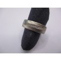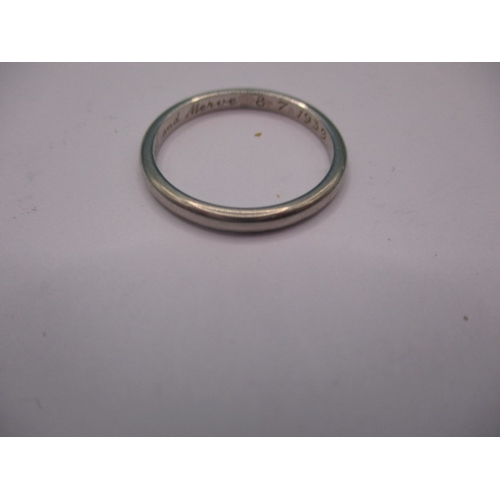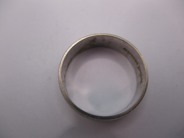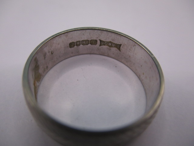 A vintage 18ct white gold wedding band, with feather design, approx ring size ‘M+’, approx width 5.7mm, approx weight 4.3g, in useable pre-owned condition