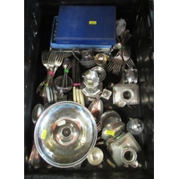 A box of assorted items, to include trays, barometer, boxes etc