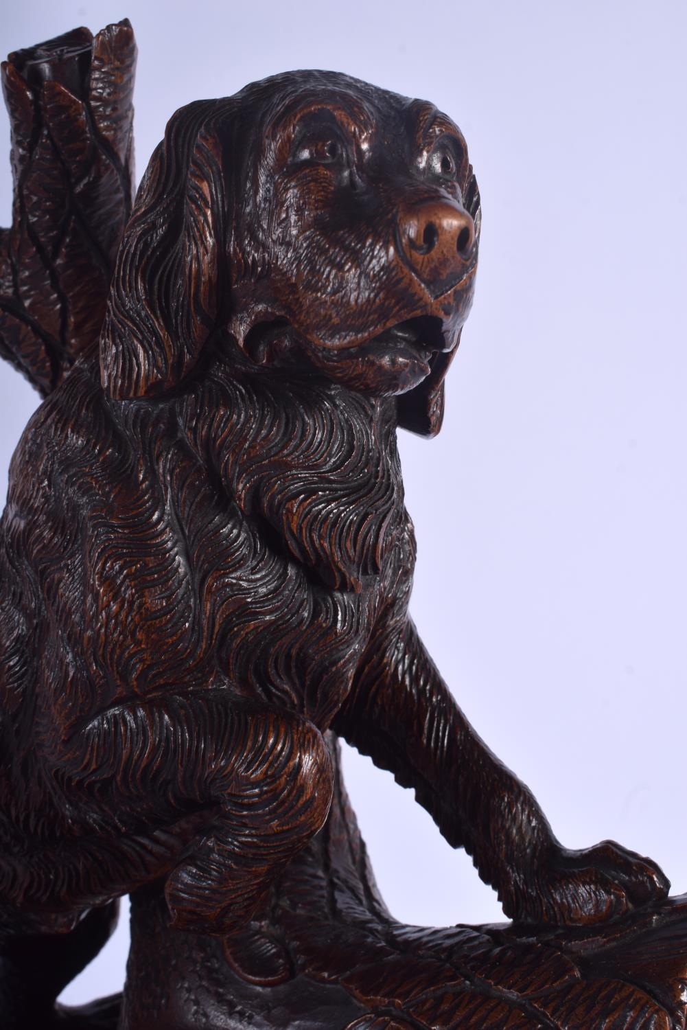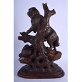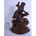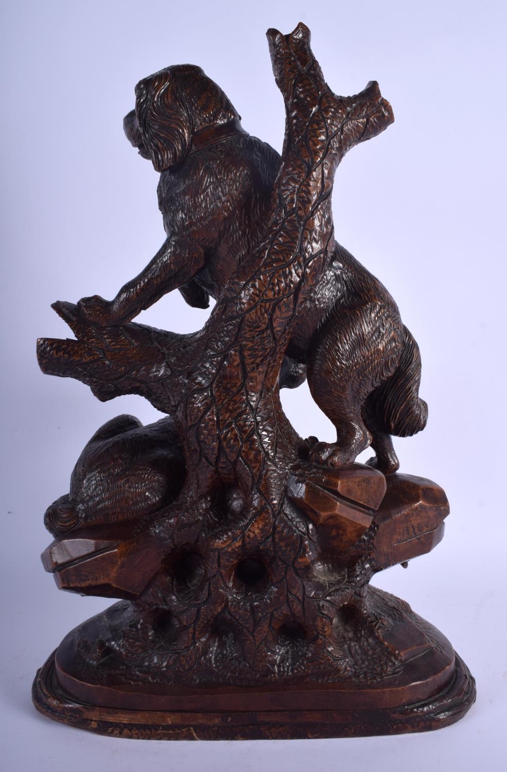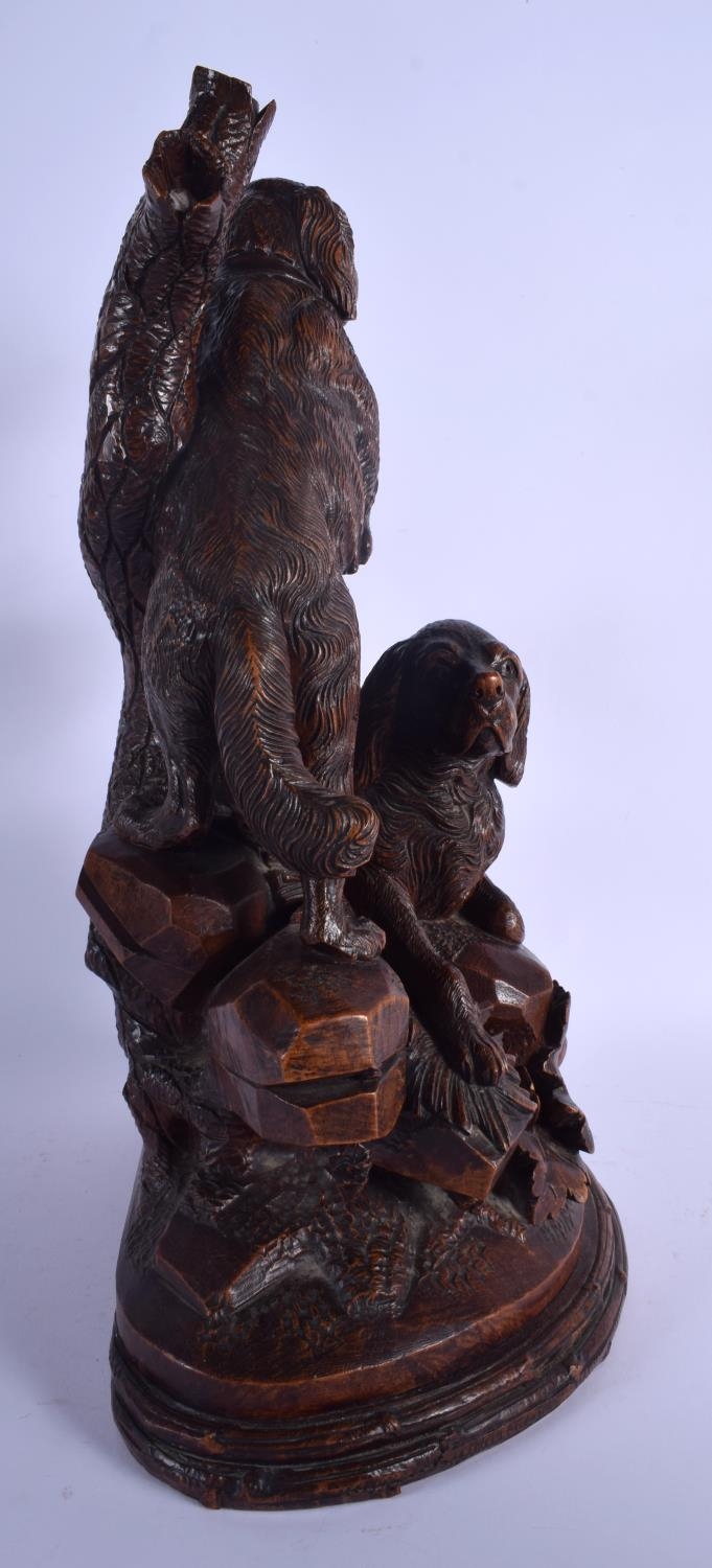 A LARGE 19TH CENTURY BAVARIAN BLACK FOREST CARVED WOOD FIGURAL GROUP modelled as two hounds upon a rocky outcrop. 45 cm x 23 cm.
