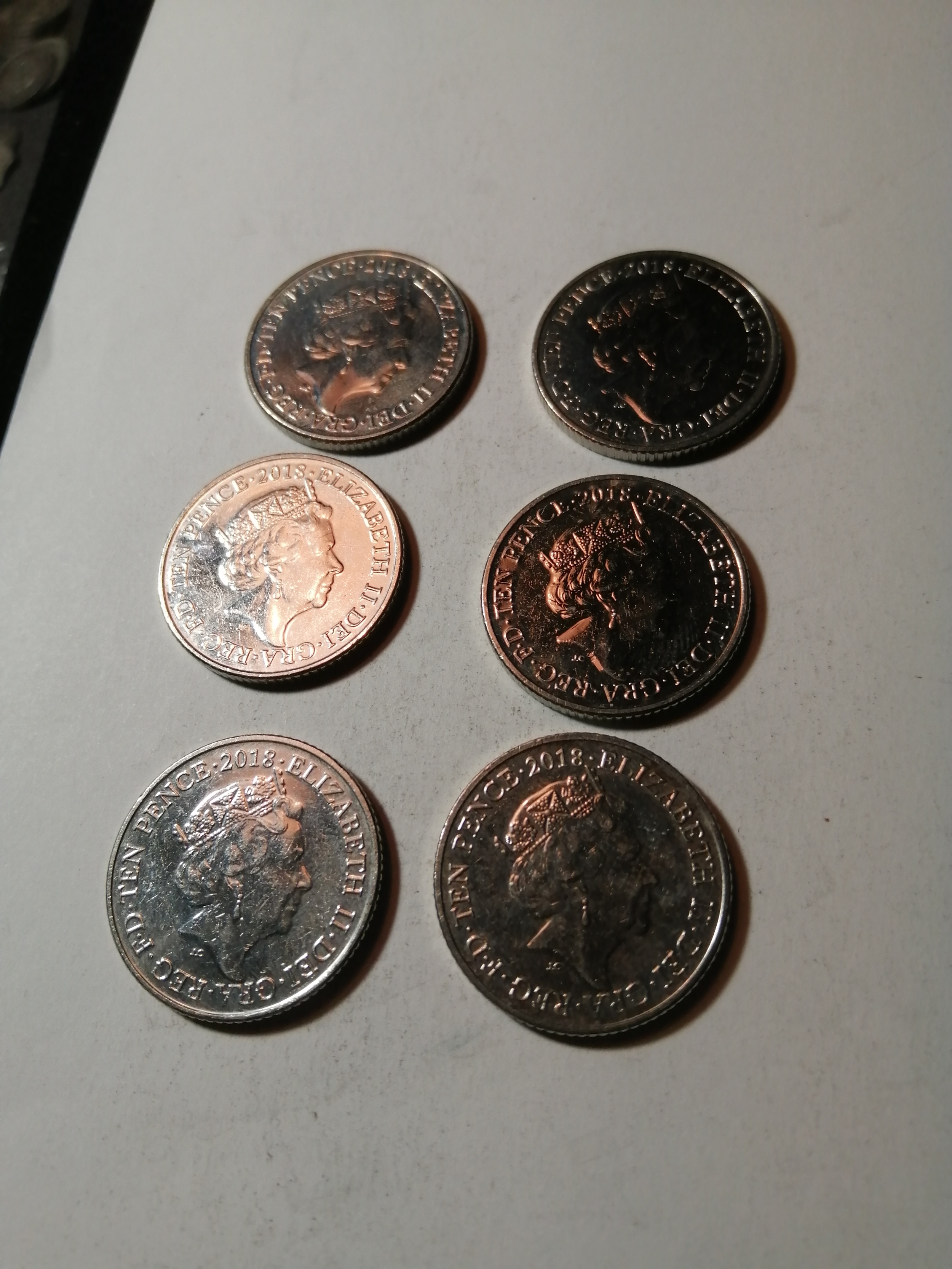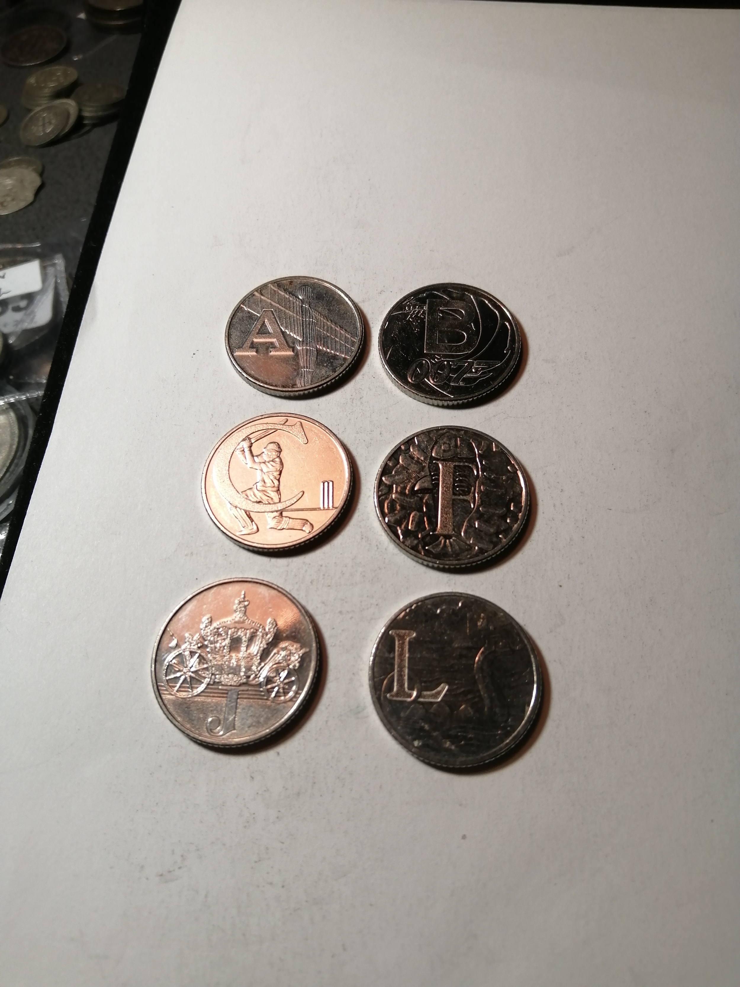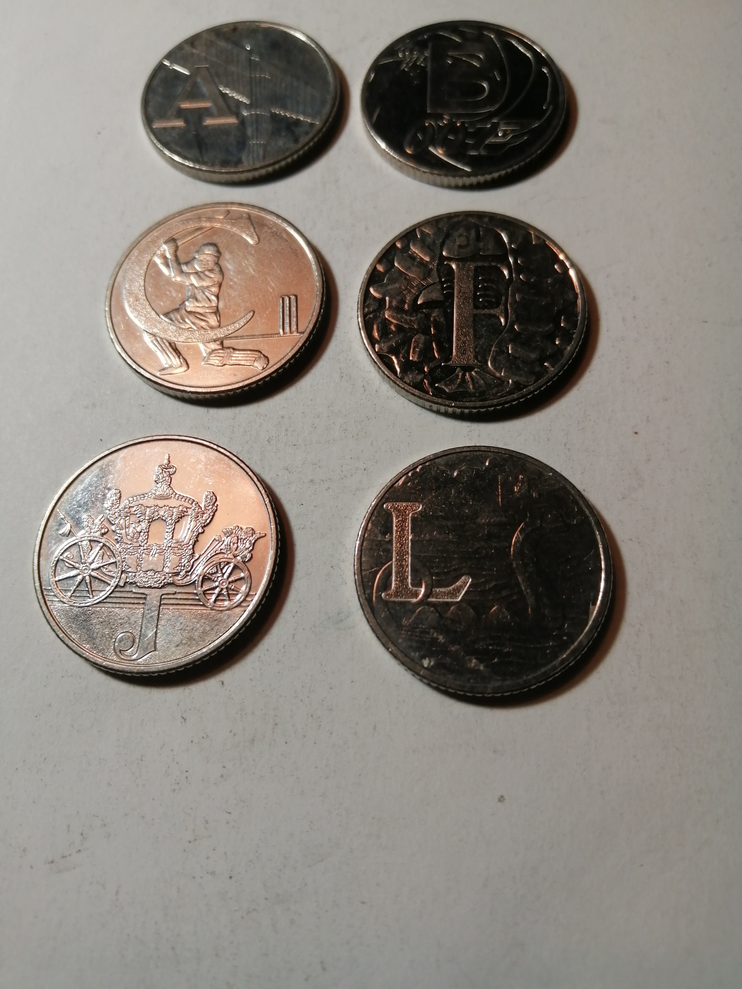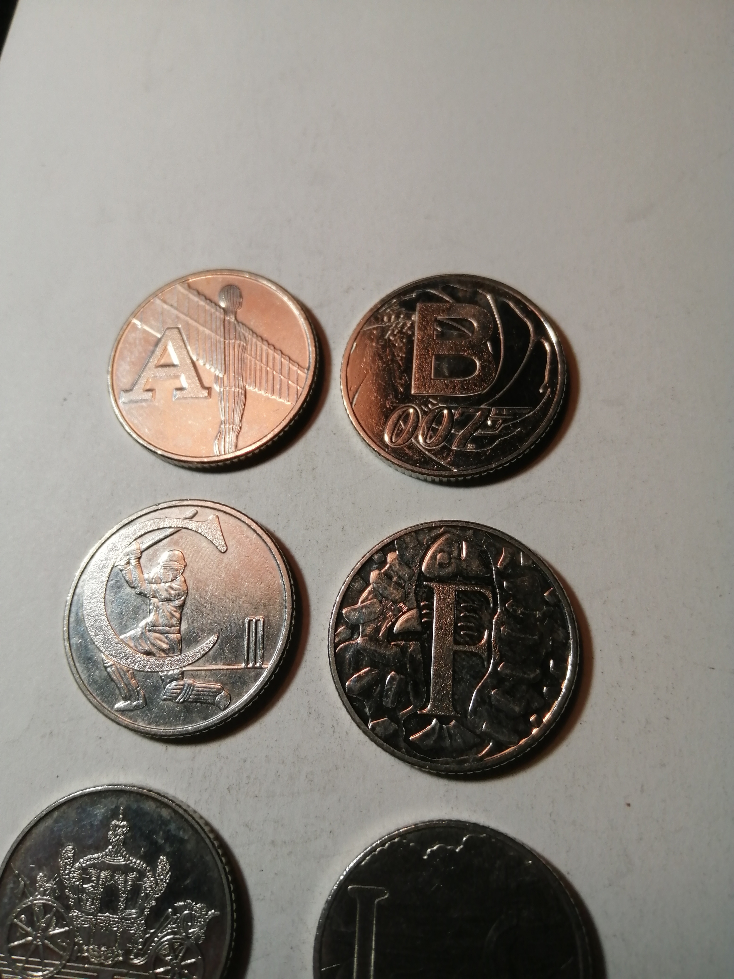 COINS : 6 x mixed alphabetical 10p coins (including James Bond)
