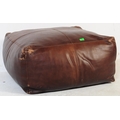 A large contemporary brown leather stitched pouffe - lazy cushion. Of large square form with brown leather stitched upholstery