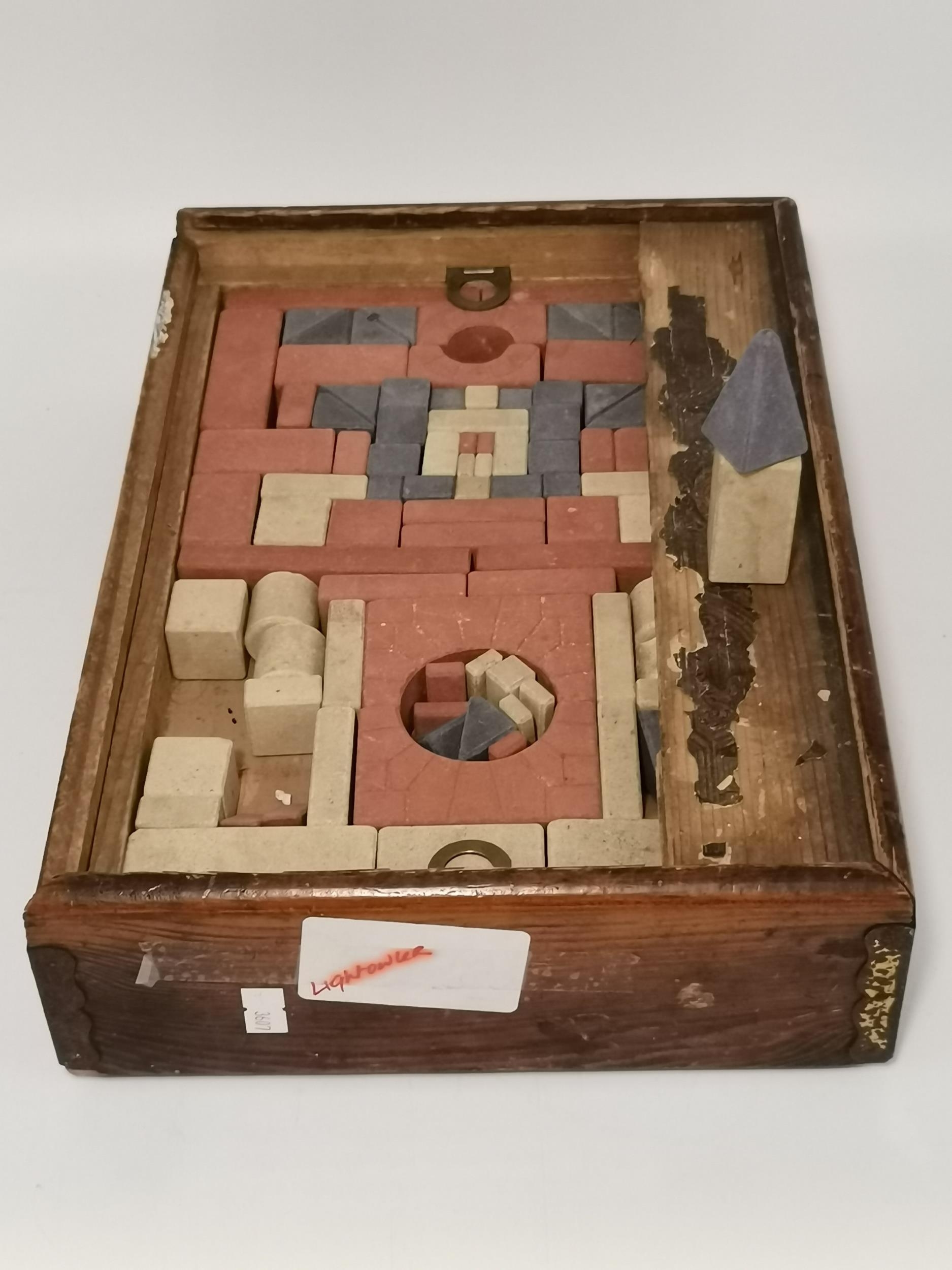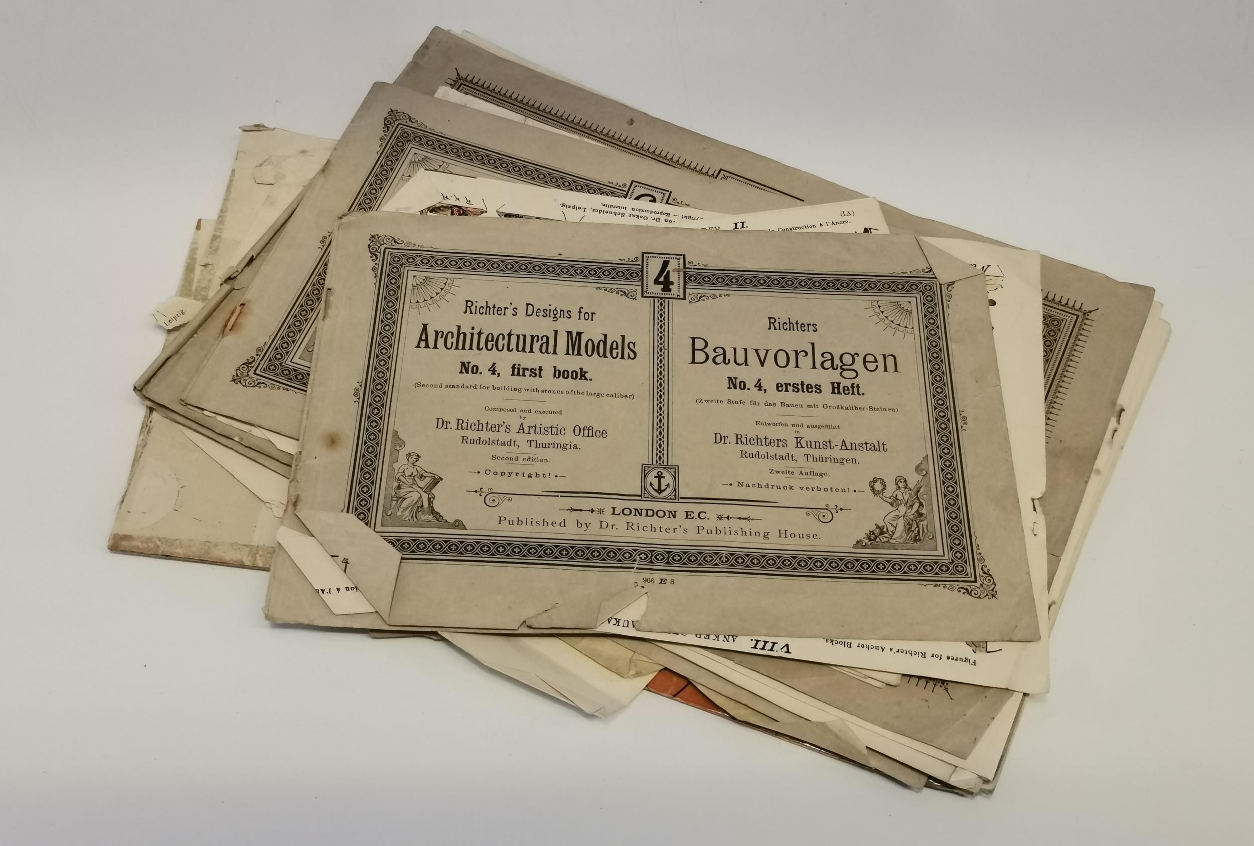 Richter's Anchor Blocks, by F. A. Richter & Co., late 19th/early 20th Century, a set of coloured stone building boxes, in original wooden case, with assorted accompanying booklets including Richter's Designs for Architectural Models, No.4, No.6 and No.8, and The Practical Architect, No.8.