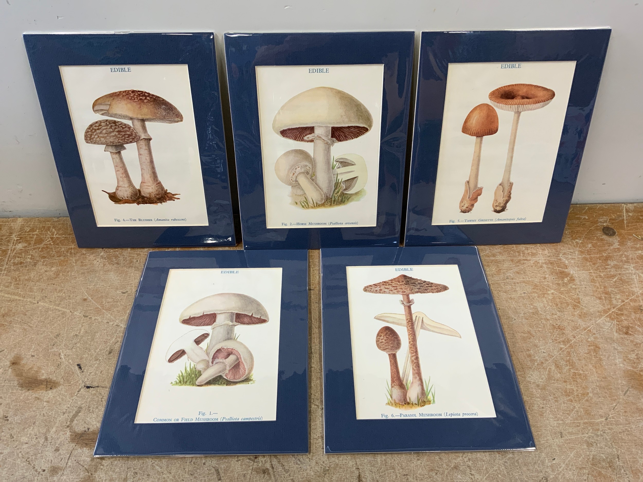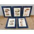 5x Vintage Prints of Mushrooms 1940 Matching Mounts