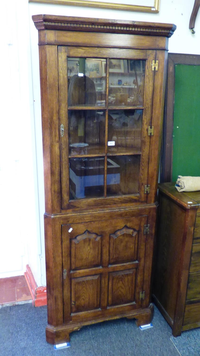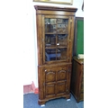 An Old Solid Wood Corner Display Unit With Glazed Top and Lower Cupboard