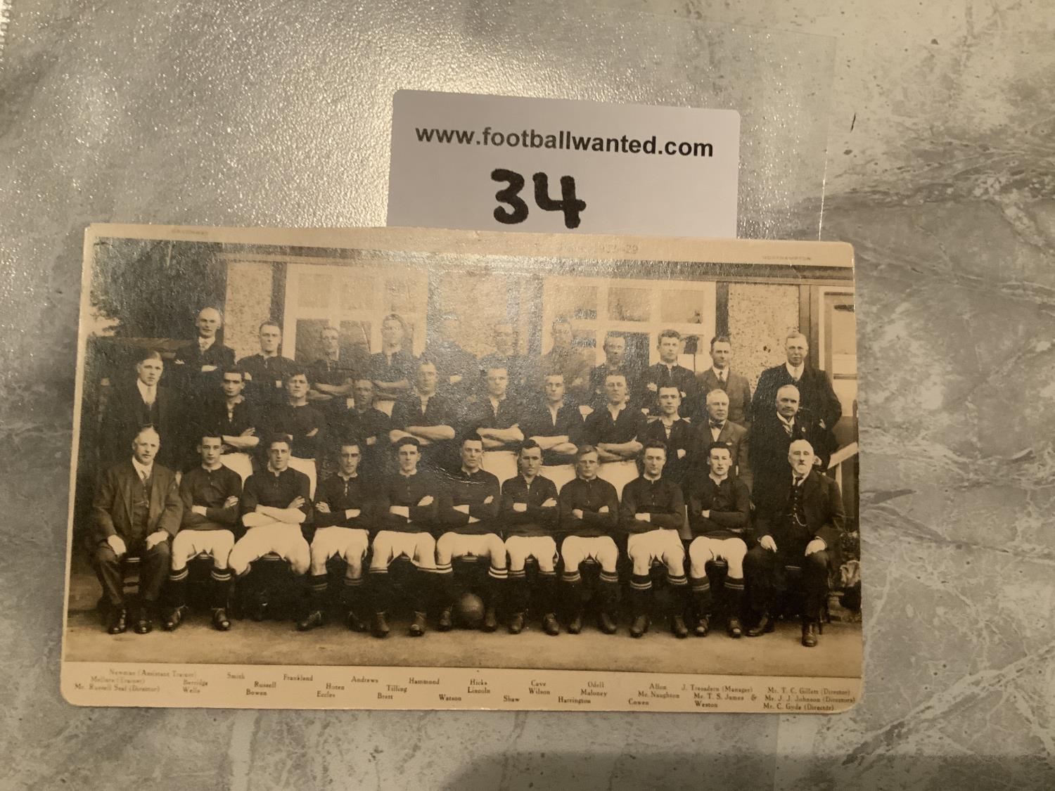 Northampton Town 1928/1929 Football Team Postcard: Fair condition with no writing to rear. Slight rounding and not cut perfectly.