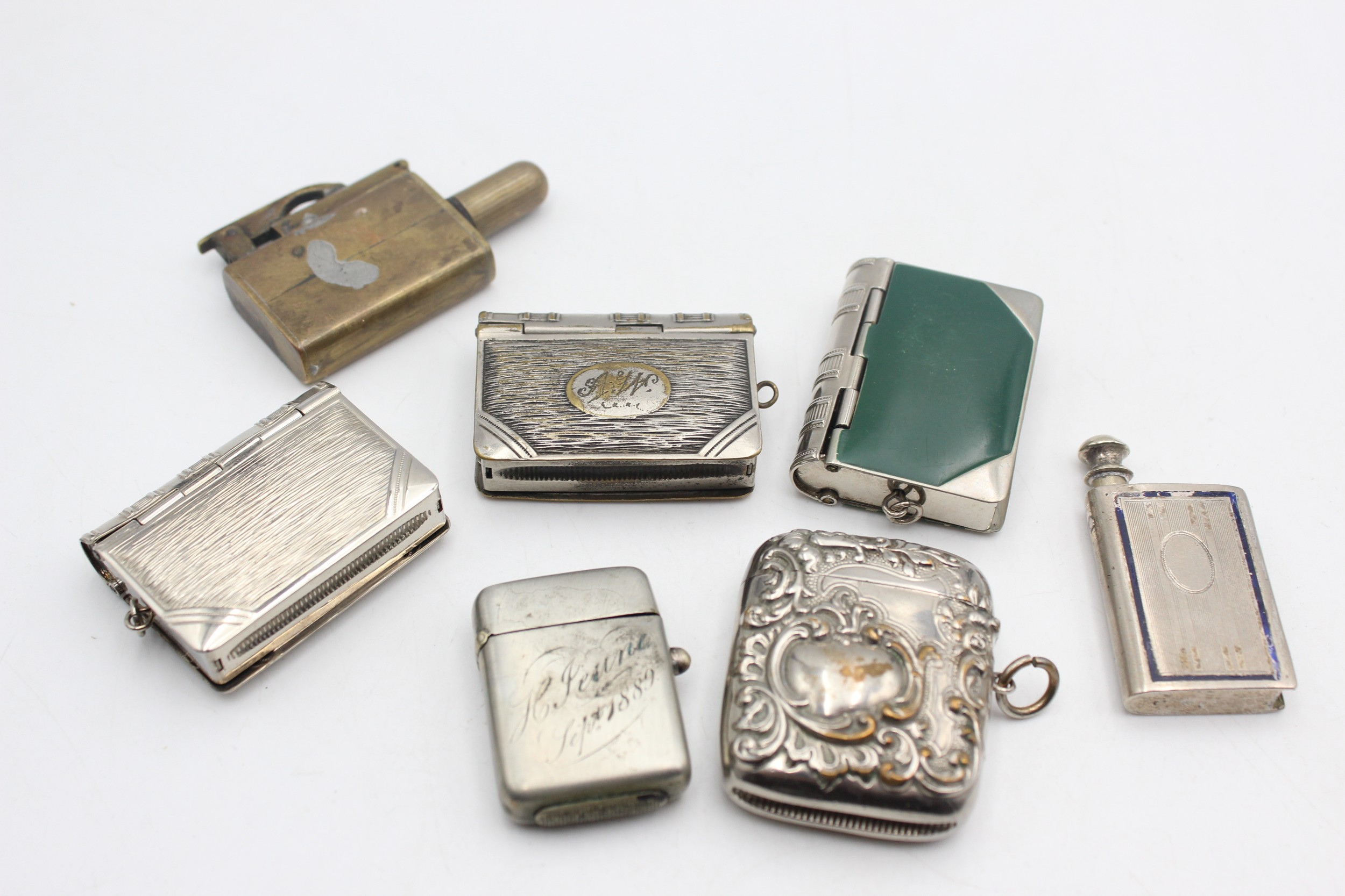 7 x Antique / Vintage TOBACCIANA Includes Vesta Cases, Silver Plate, Brass Etc