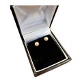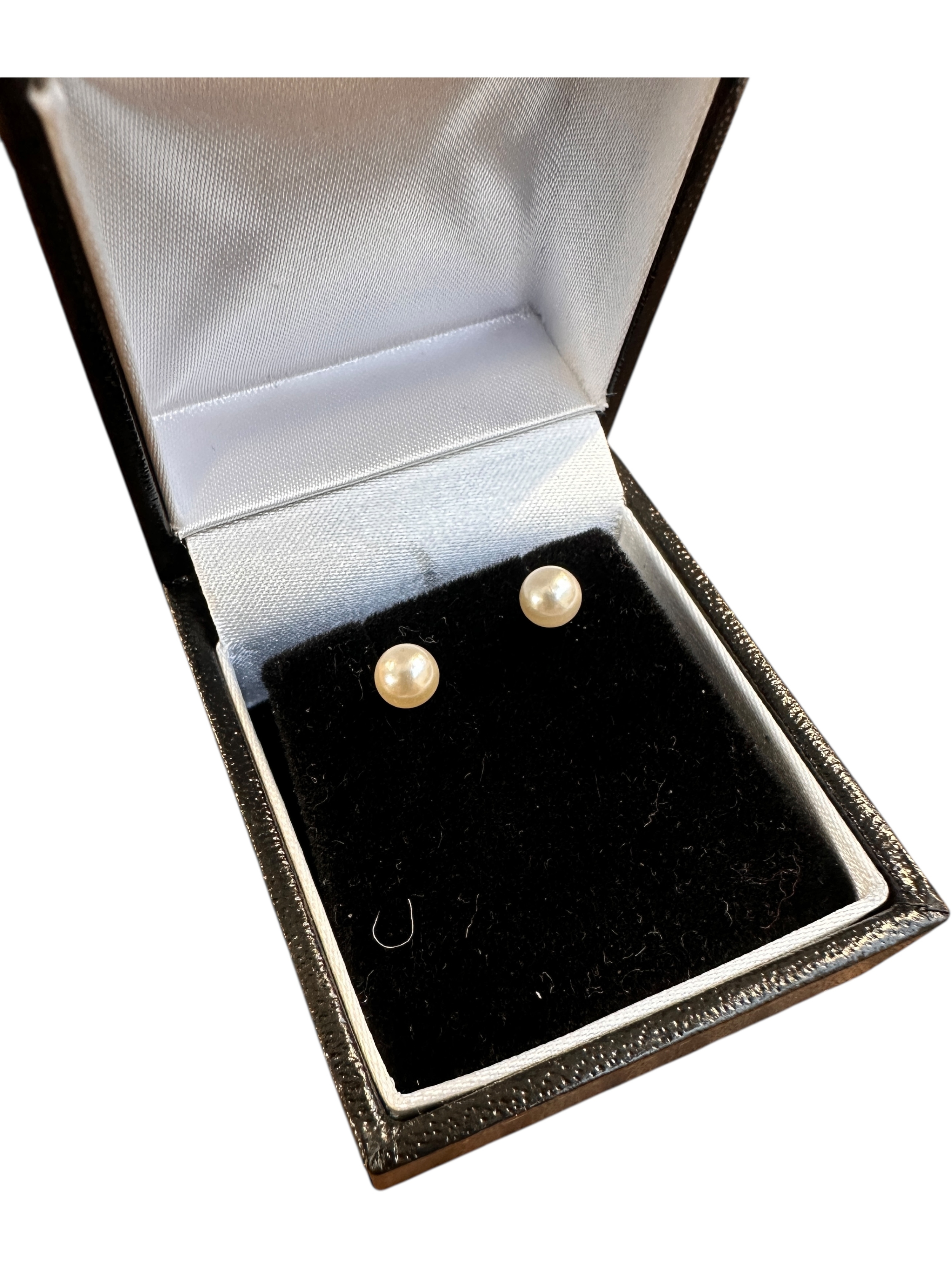 Gold Mounted Pearl Stud earrings. Stamped 9k to Butterflies. Boxed.