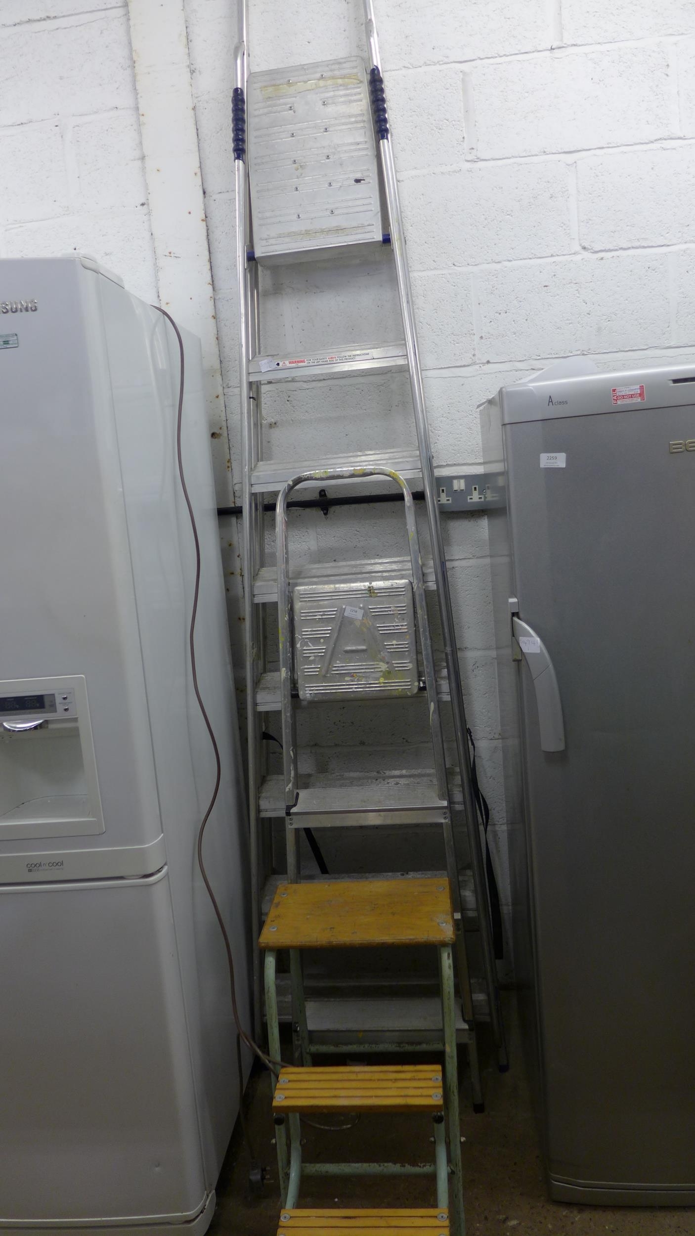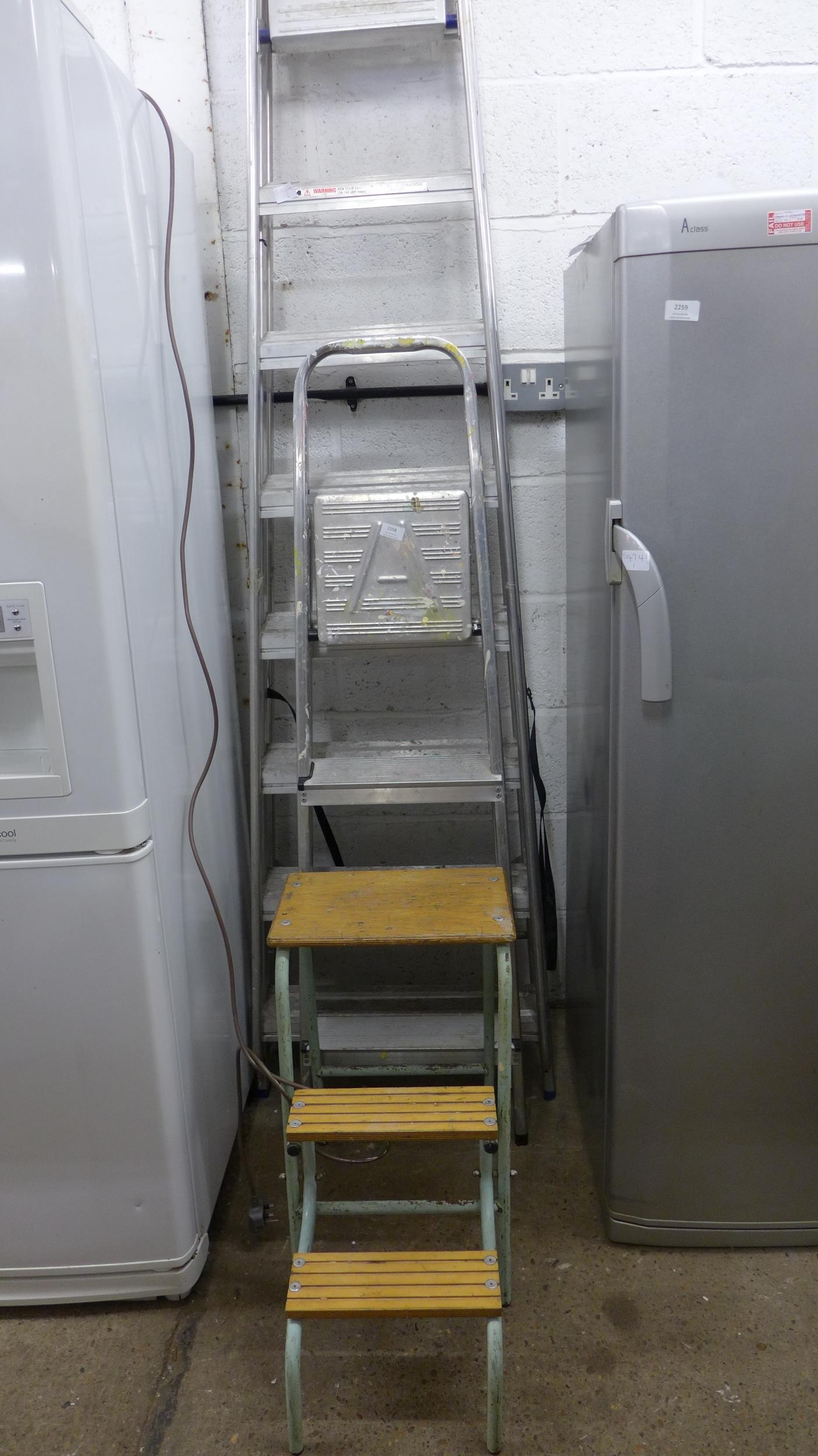 8-tread painter's stepladder, 4-tread ladder and bookstore/library step stool