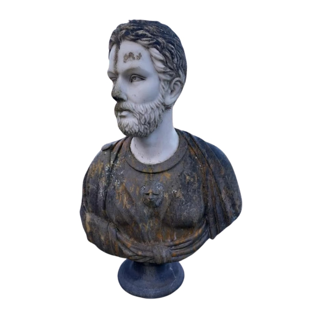 Marble bust of Roman Emperor. {74 cm H x 53 cm W x 30 cm D}.