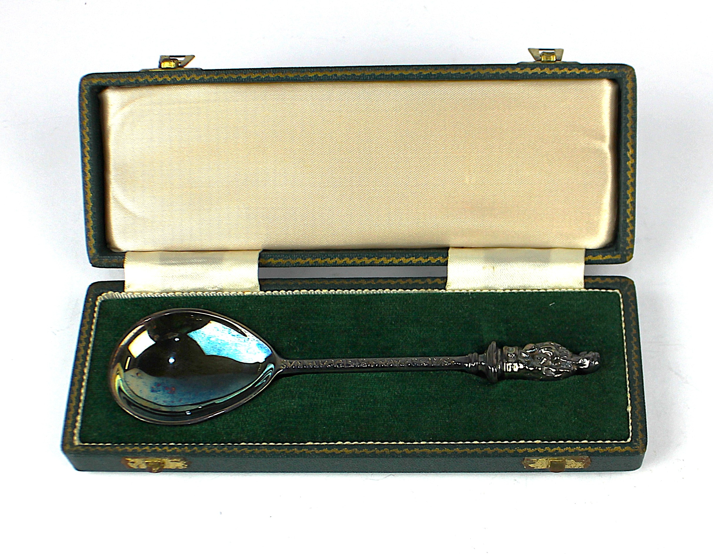 A 925 silver replica of an Irish apostle spoon, 16cm long, 2.4oz, in fitted case