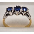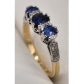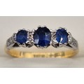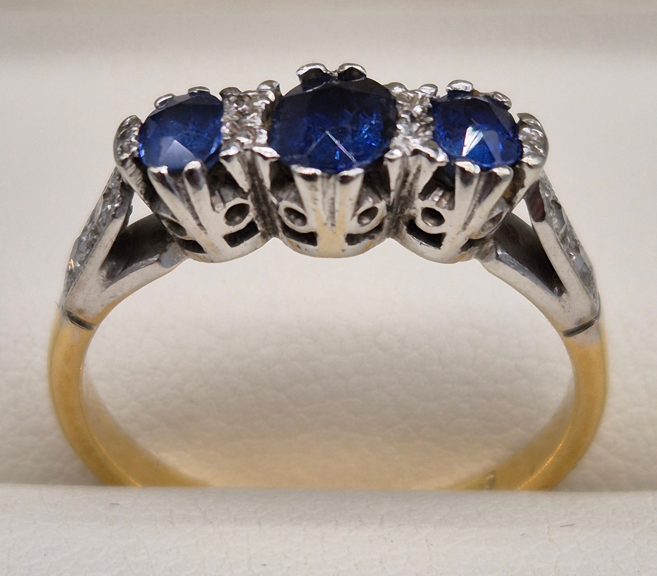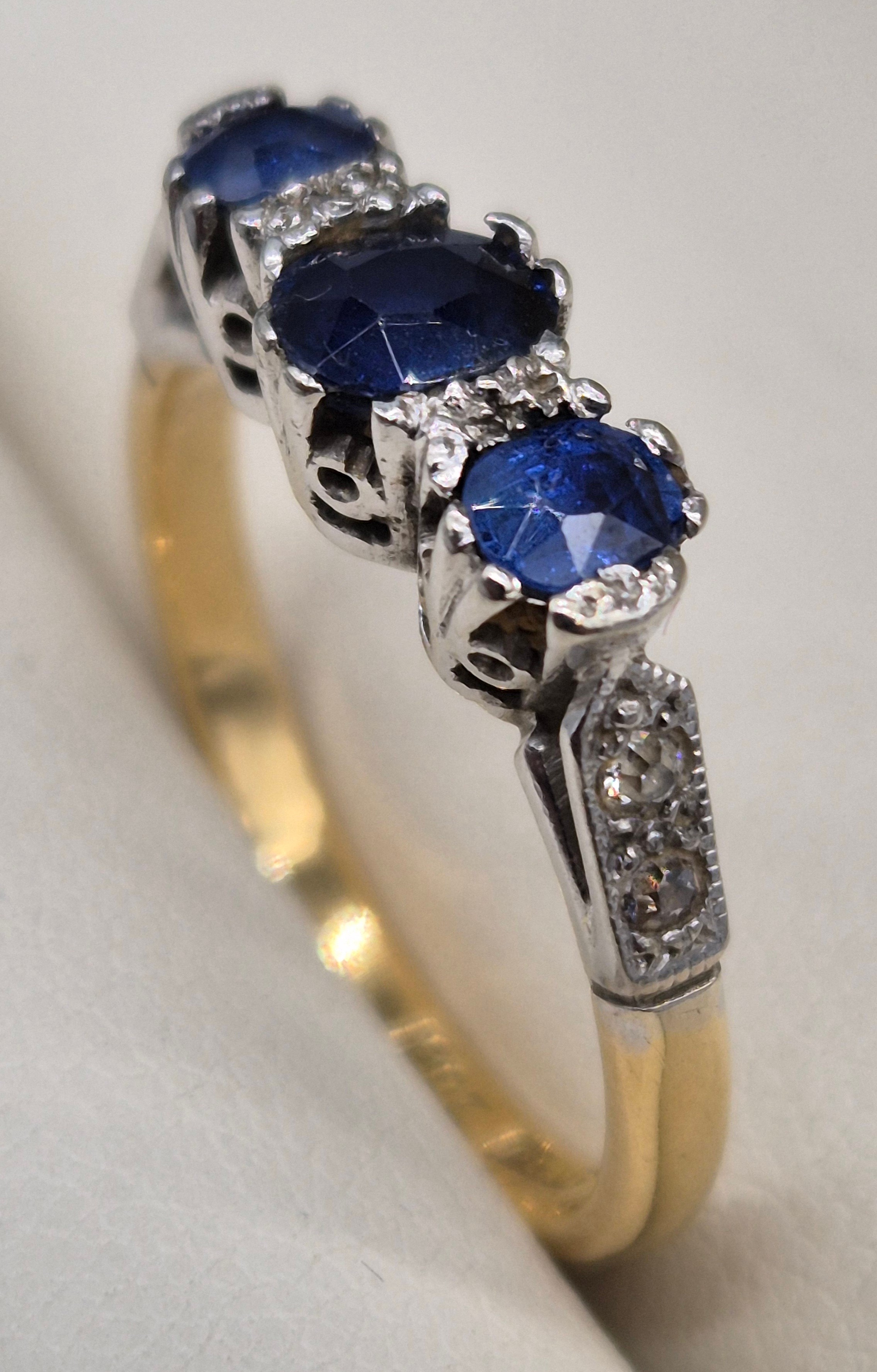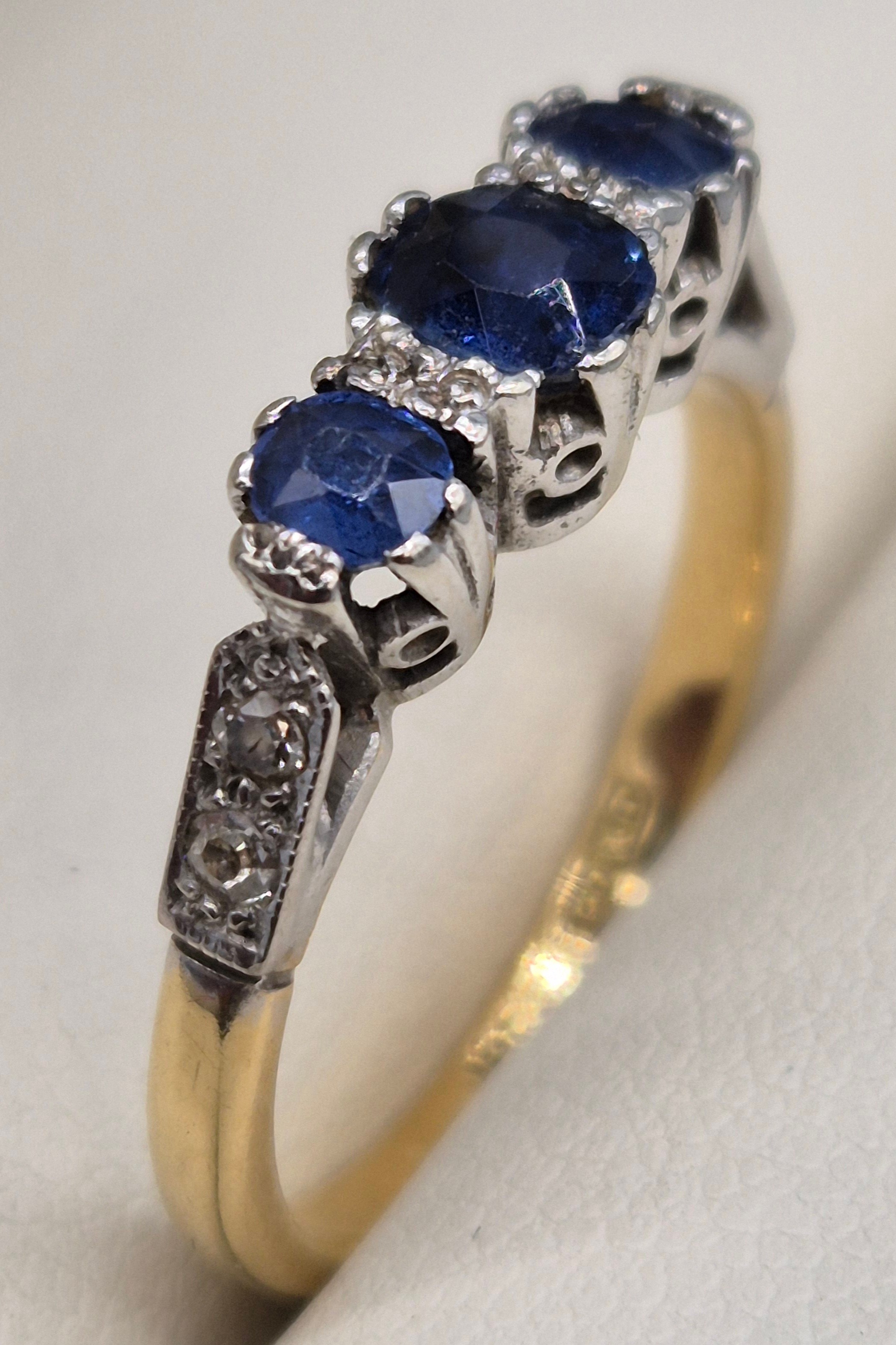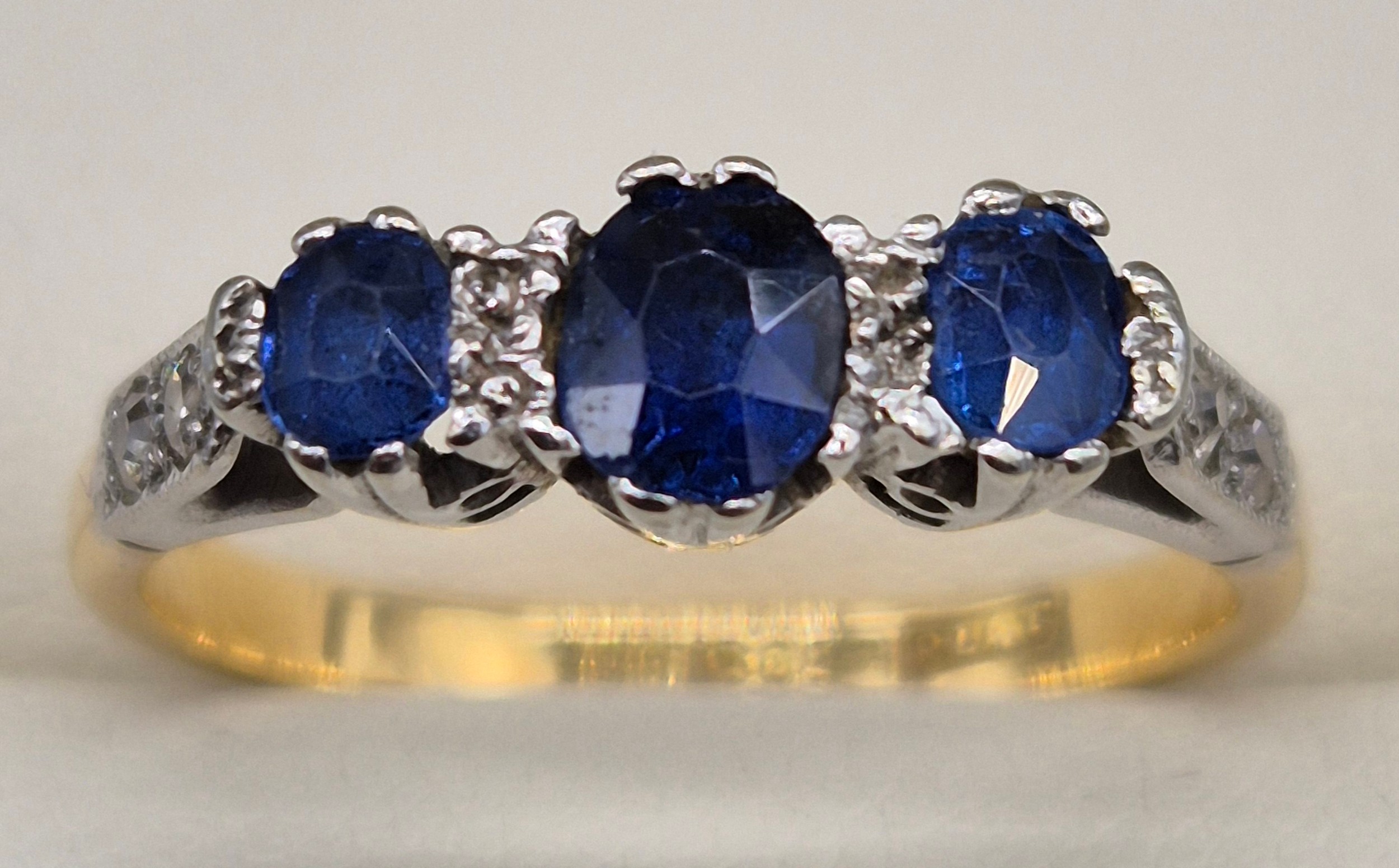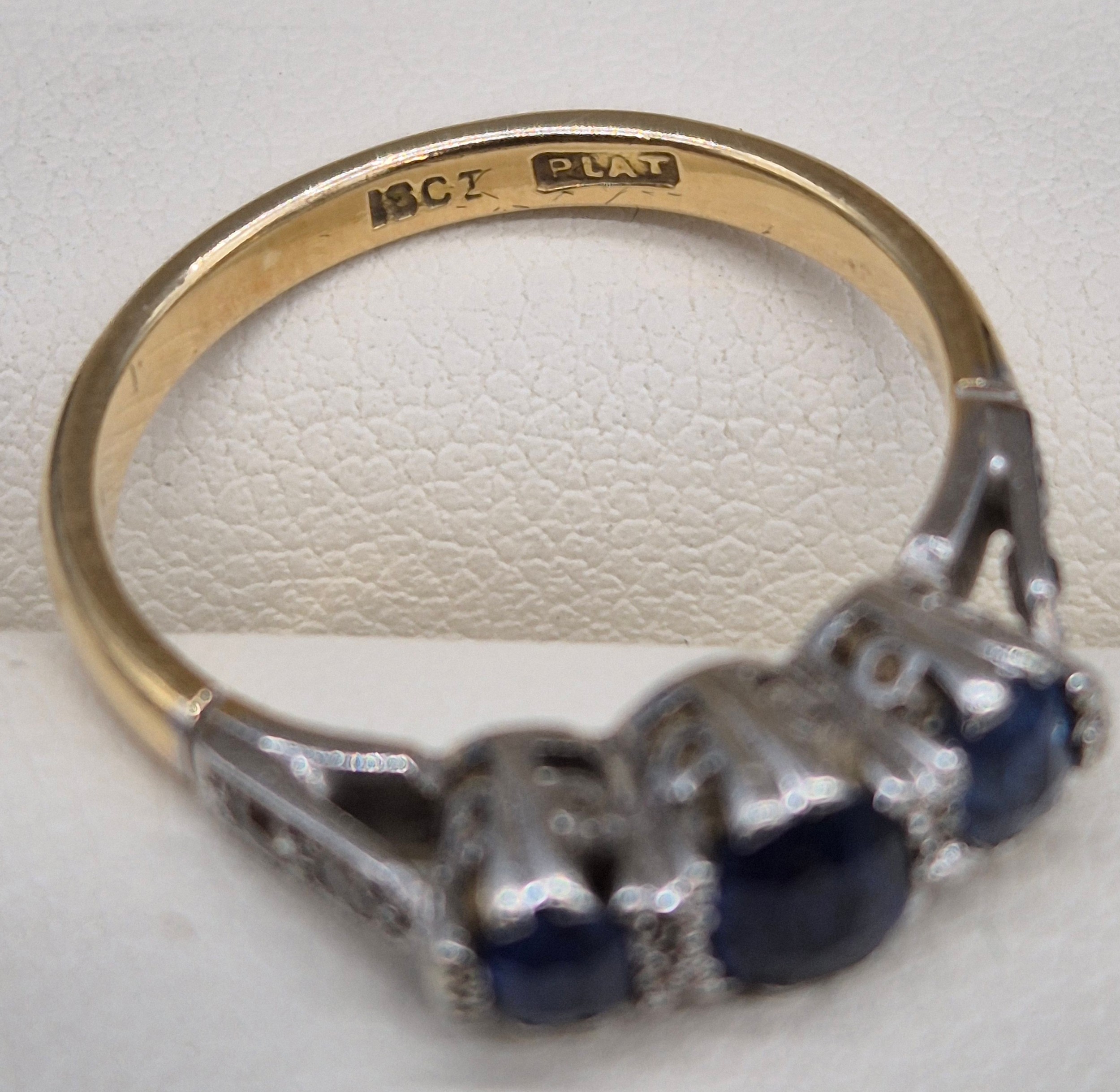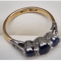 18ct yellow gold & Platinum, diamond and sapphire stone ring. 3.46grams. Ring size M.