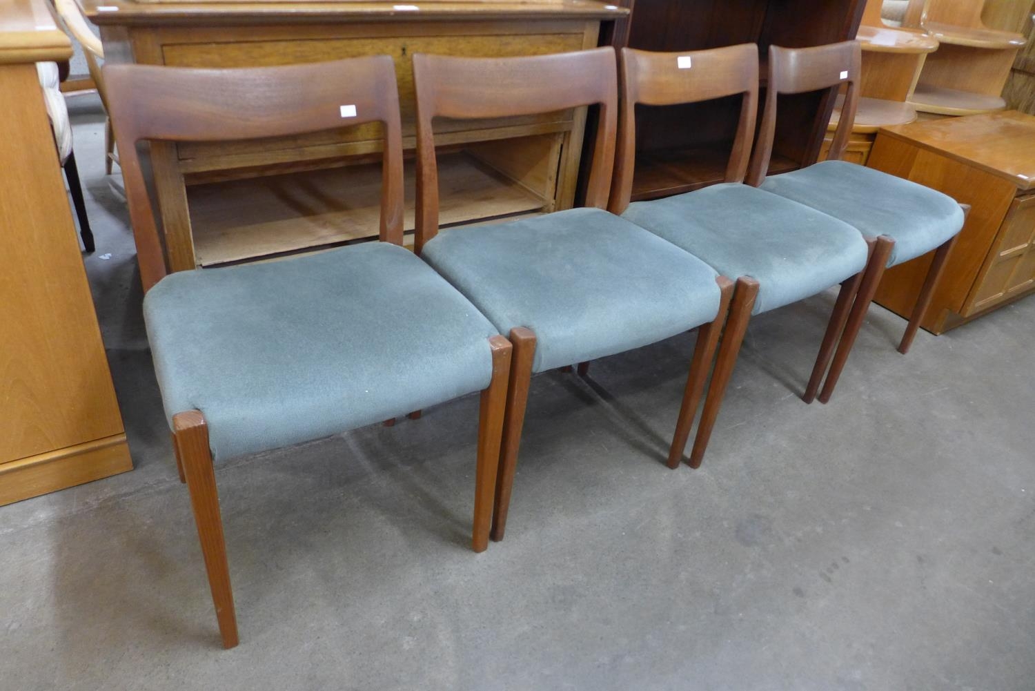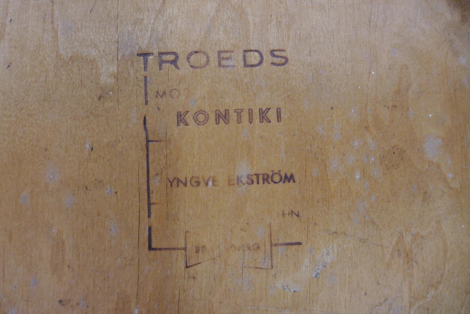 A set of four Swedish Troeds Kontiki teak dining chairs, designed by Yngve Ekstrom