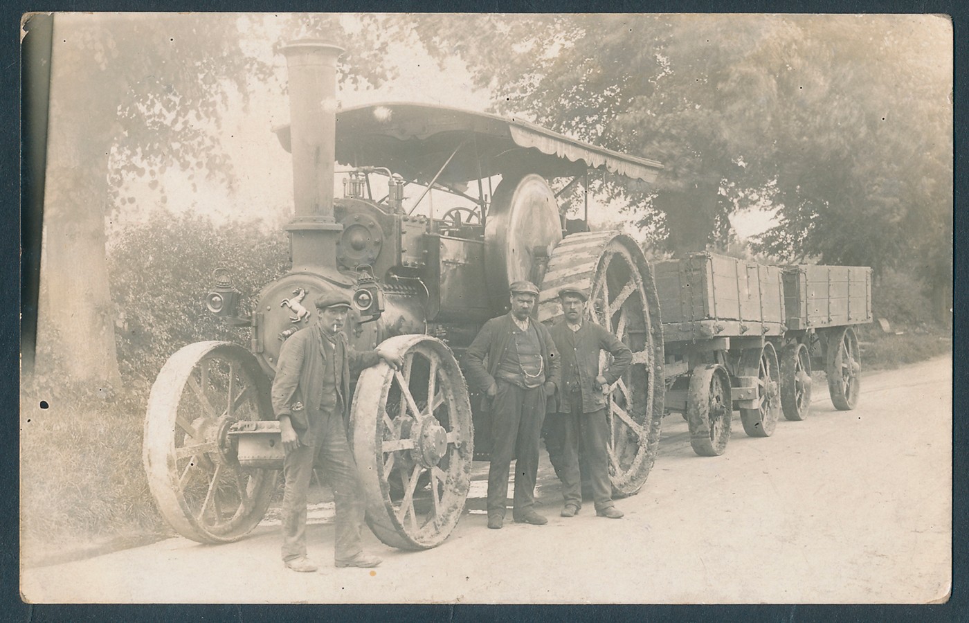 Wiltshire. Coln in modern album. Chippenham incl. RP and ptd. street scenes, floods, Royal visit, cattle market, employees Saxby and Farmer Ltd., cloth factory fire, Salvation army band etc. Steam engine said to be Swindon area (see photo). Corsham RP and ptd. Market Lavington fire engine with crew identified, Swindon rugby football club, tram accident Swindon. Calne incl. station (2), visit of King Edward V11, street scenes etc. Trowbridge incl. station. Station at Devizes, railway accident Salisbury, parades etc. Qty. approx. 440 (V)