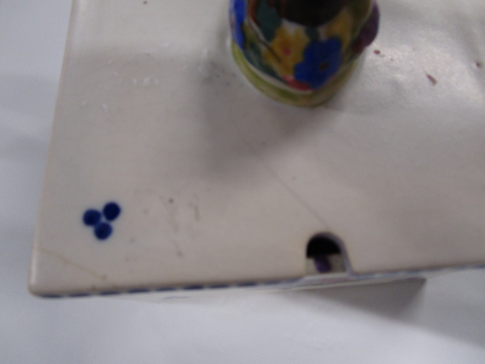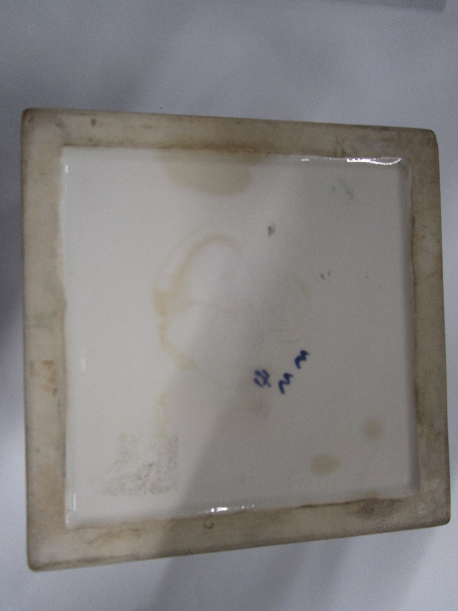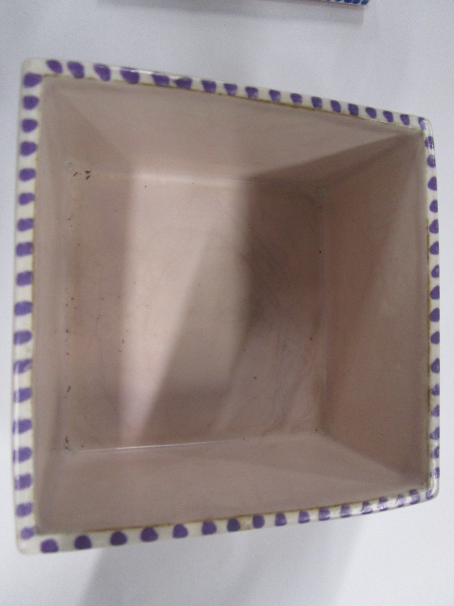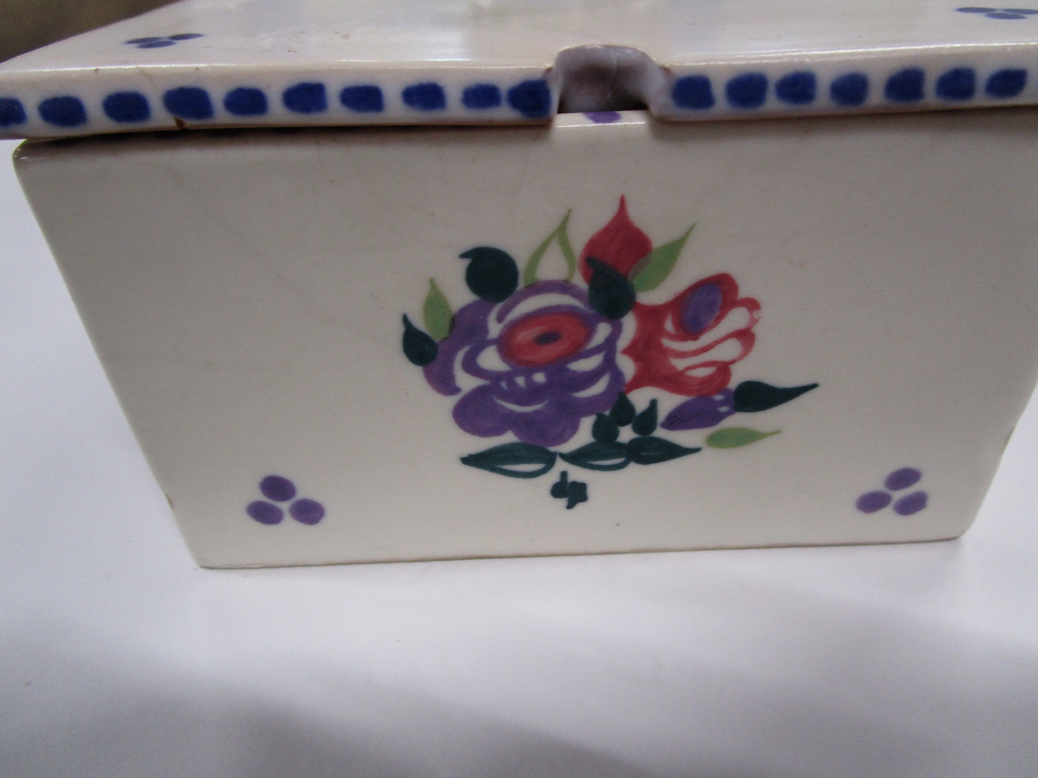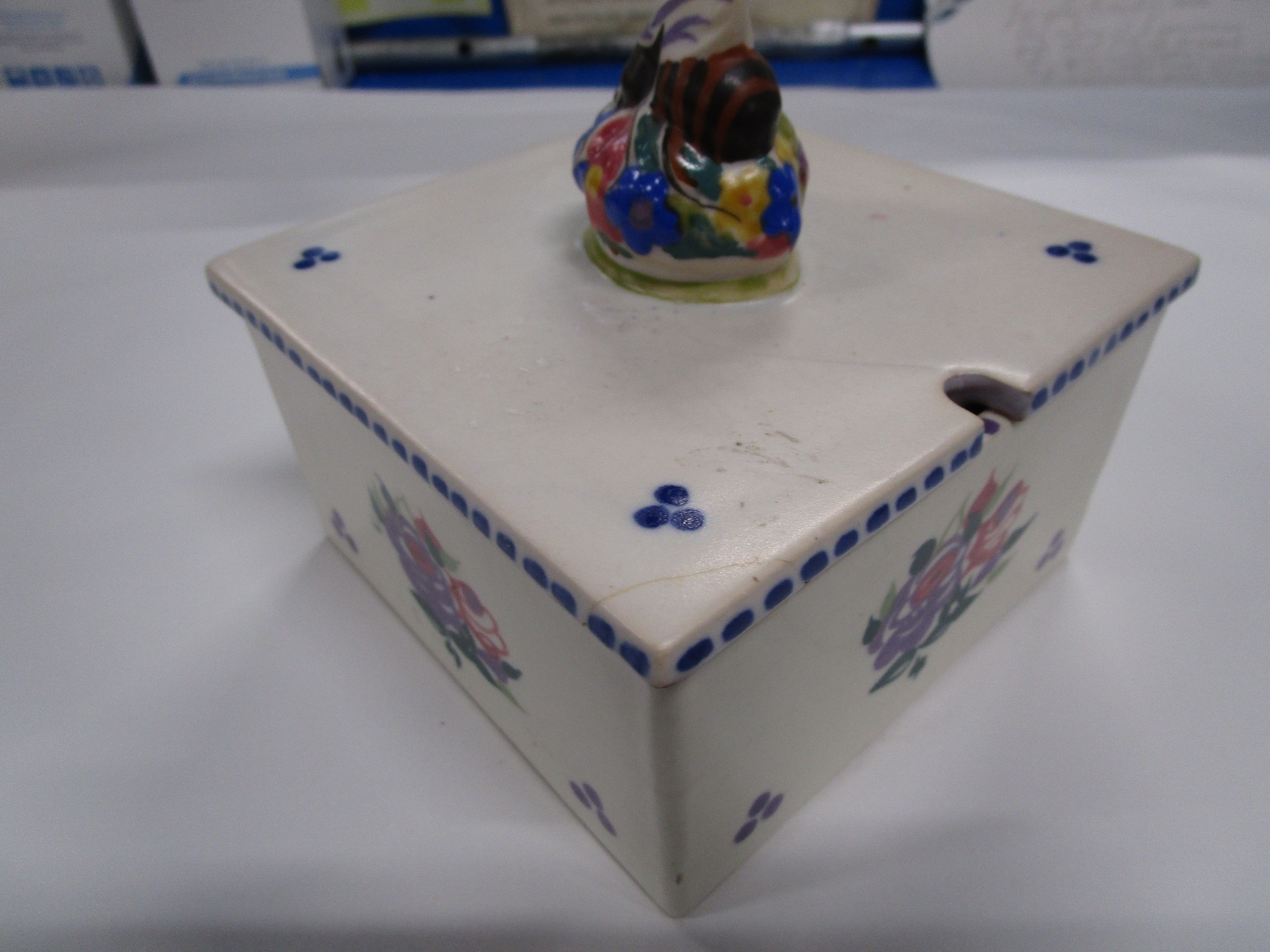 Poole pottery square honey pot with bee lid in the WW pattern 1920s 30s .Matching Artist for Lid and base.