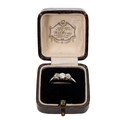 A platinum set three stone diamond ring, the centre stone approx 0.15ct flanked by two further diamonds approx 0.10ct, size M, weight 3.3 grams.
